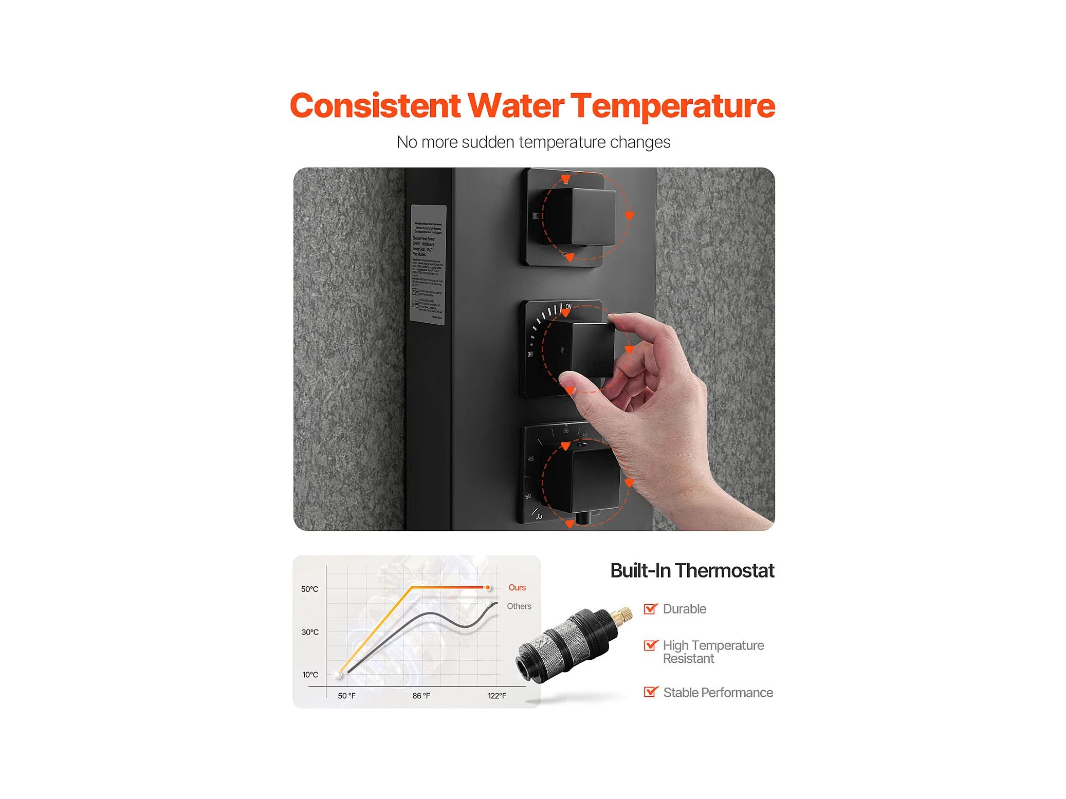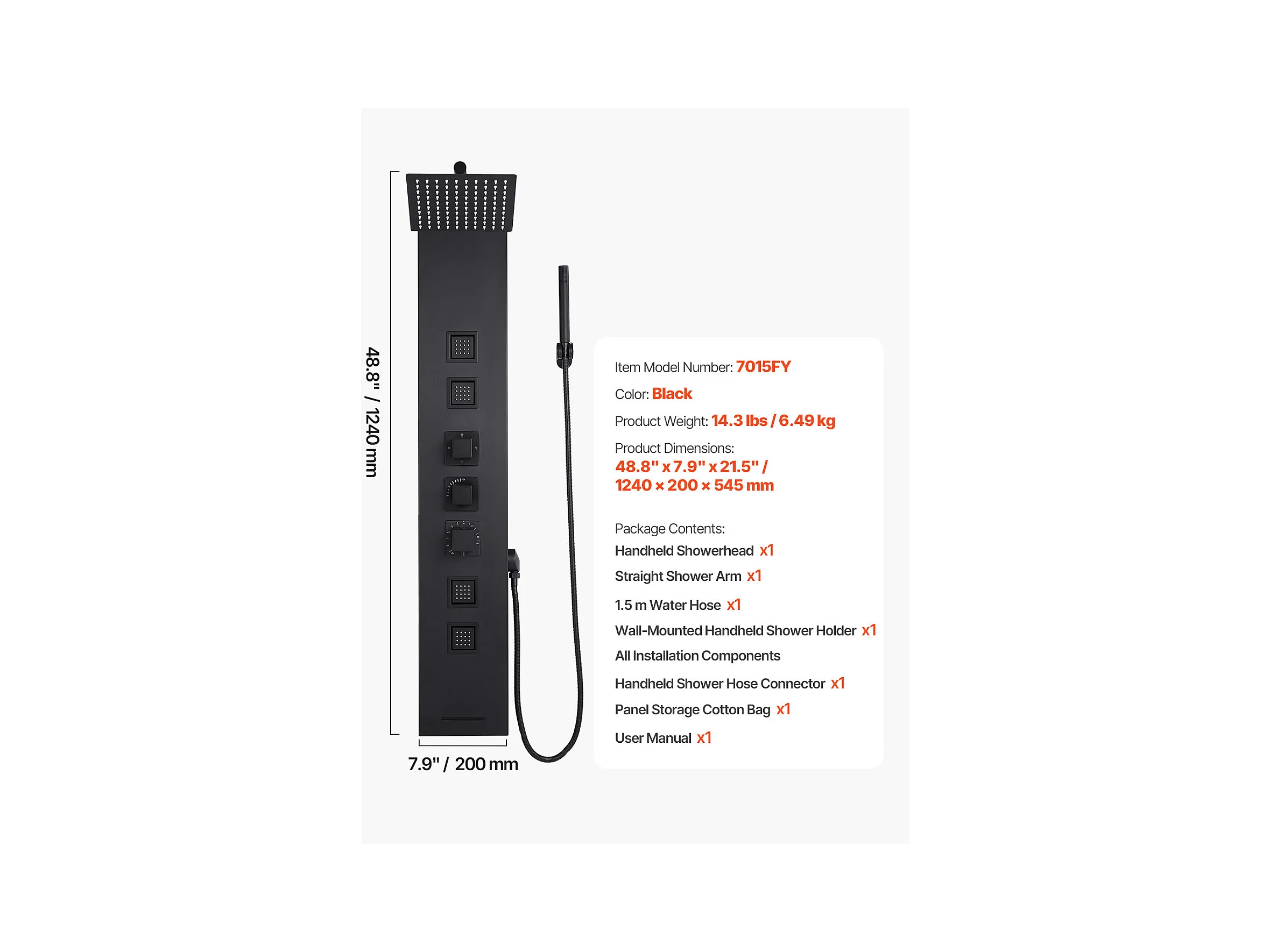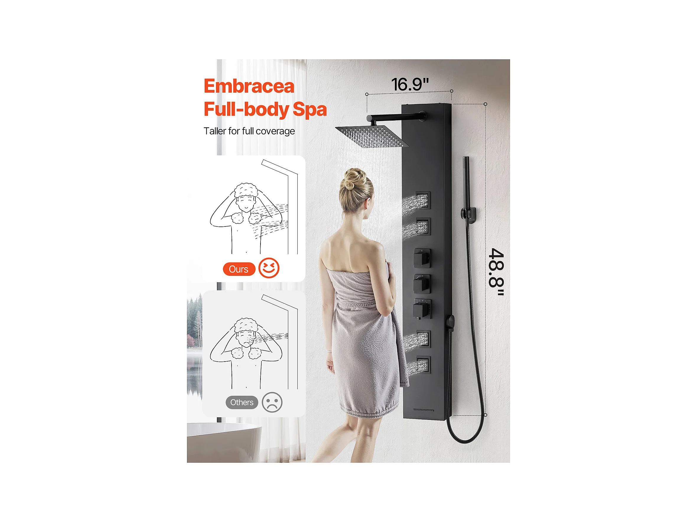 Coluna de Duche com Chuveiro Efeito Chuva SucceBuy em Aço Inoxidável, Torneira 4 Funções, 4 Jatos Corporais, Chuveiro de Mão e Bico de Banheira