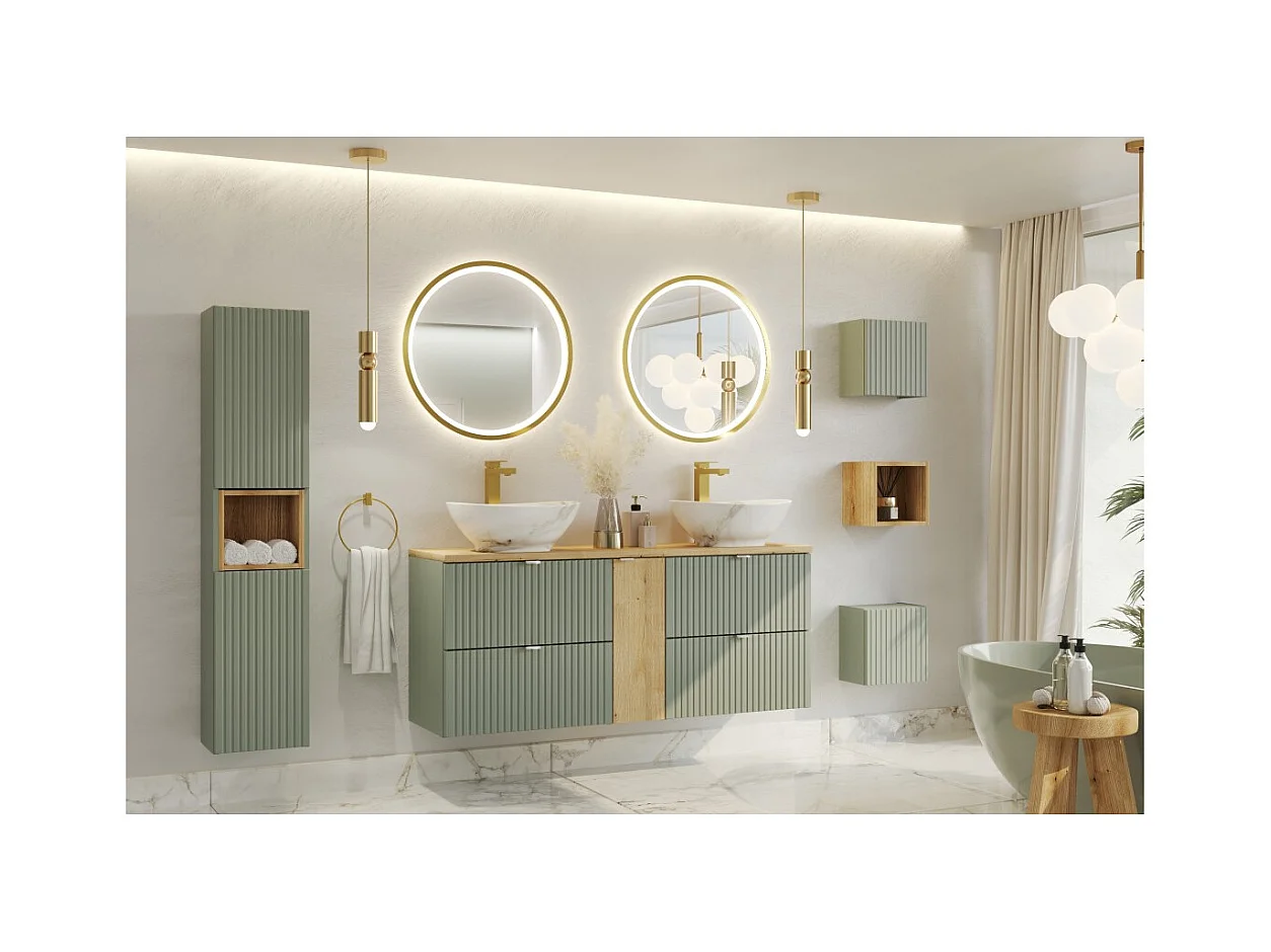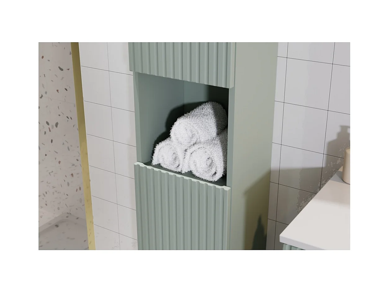 Coluna para banheiro ELVINA – 2 portas – H140 cm – Cor verde sálvia pastel – Móvel suspenso