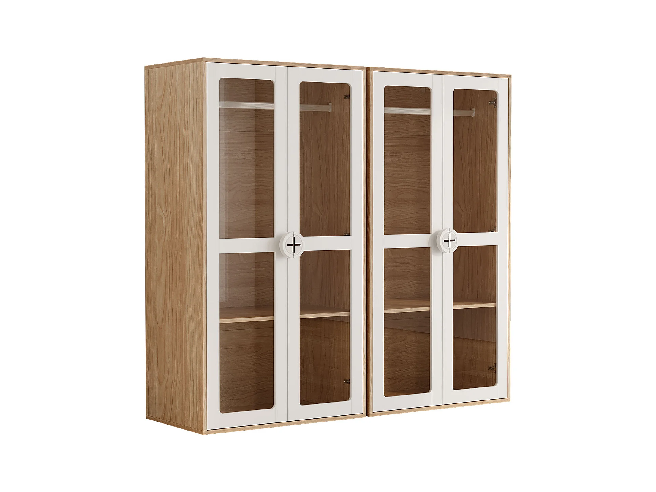Combinação de guarda-roupa infantil de 2 peças - 160 x 50 x 150 cm - portas de vidro - MDF + aglomerado - branco