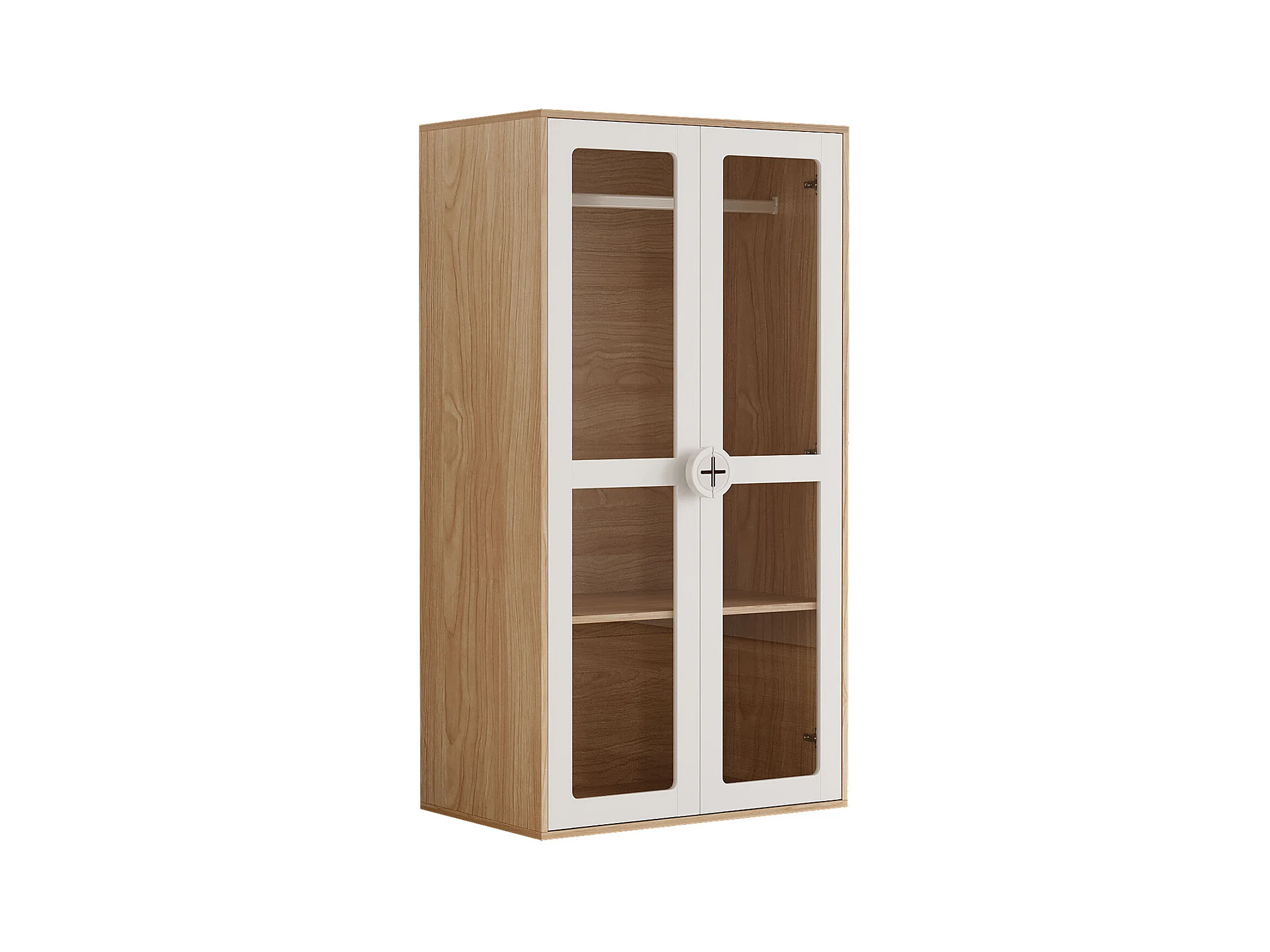 Guarda-roupa infantil 80x50x200 cm - com haste para pendurar roupas - com cama para gato - 2 portas - branco + natural