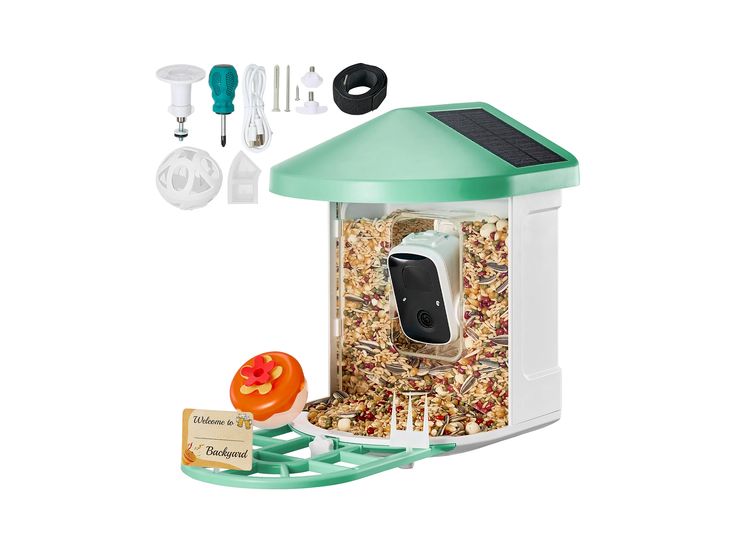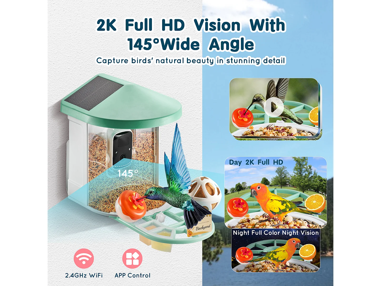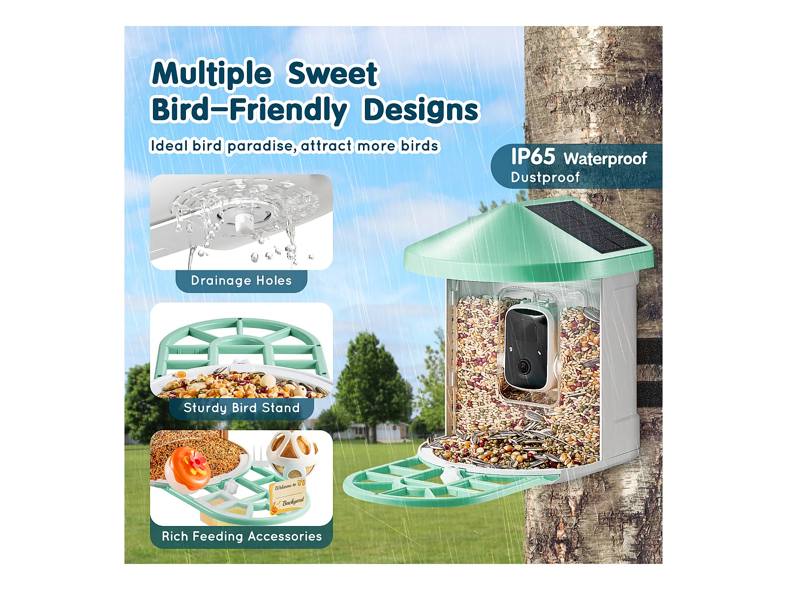Comedouro para Aves Inteligente SucceBuy com Câmera, 2K HD, Espécies IA, Alimentado pela Energia Solar