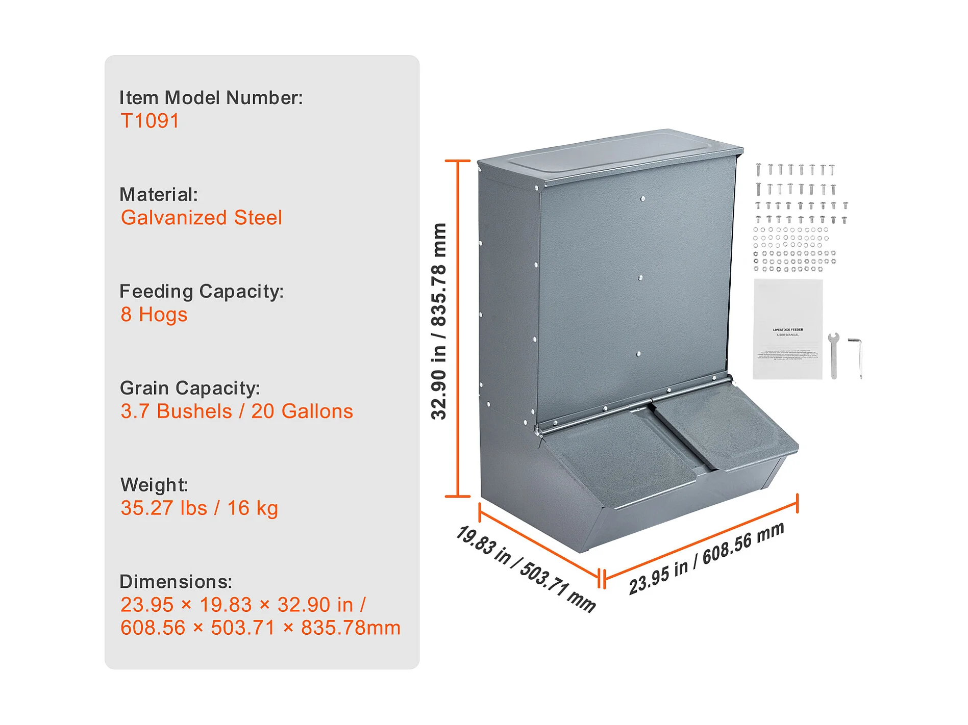 Comedouro para Porcos SucceBuy, 77 L, Porta Dupla de Metal Capaz de Acolher Até 5 Porcos