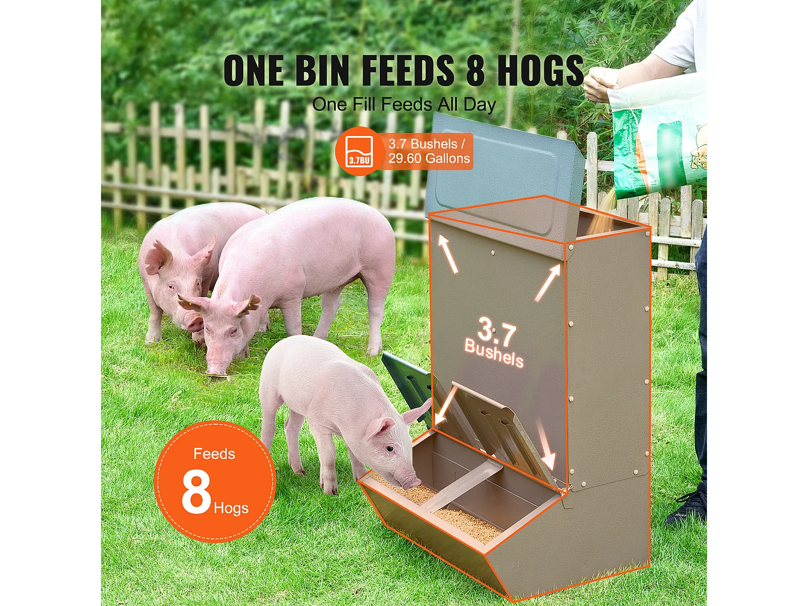 Comedouro para Porcos SucceBuy, 130 L, Porta Dupla de Metal Capaz de Acolher Até 8 Porcos