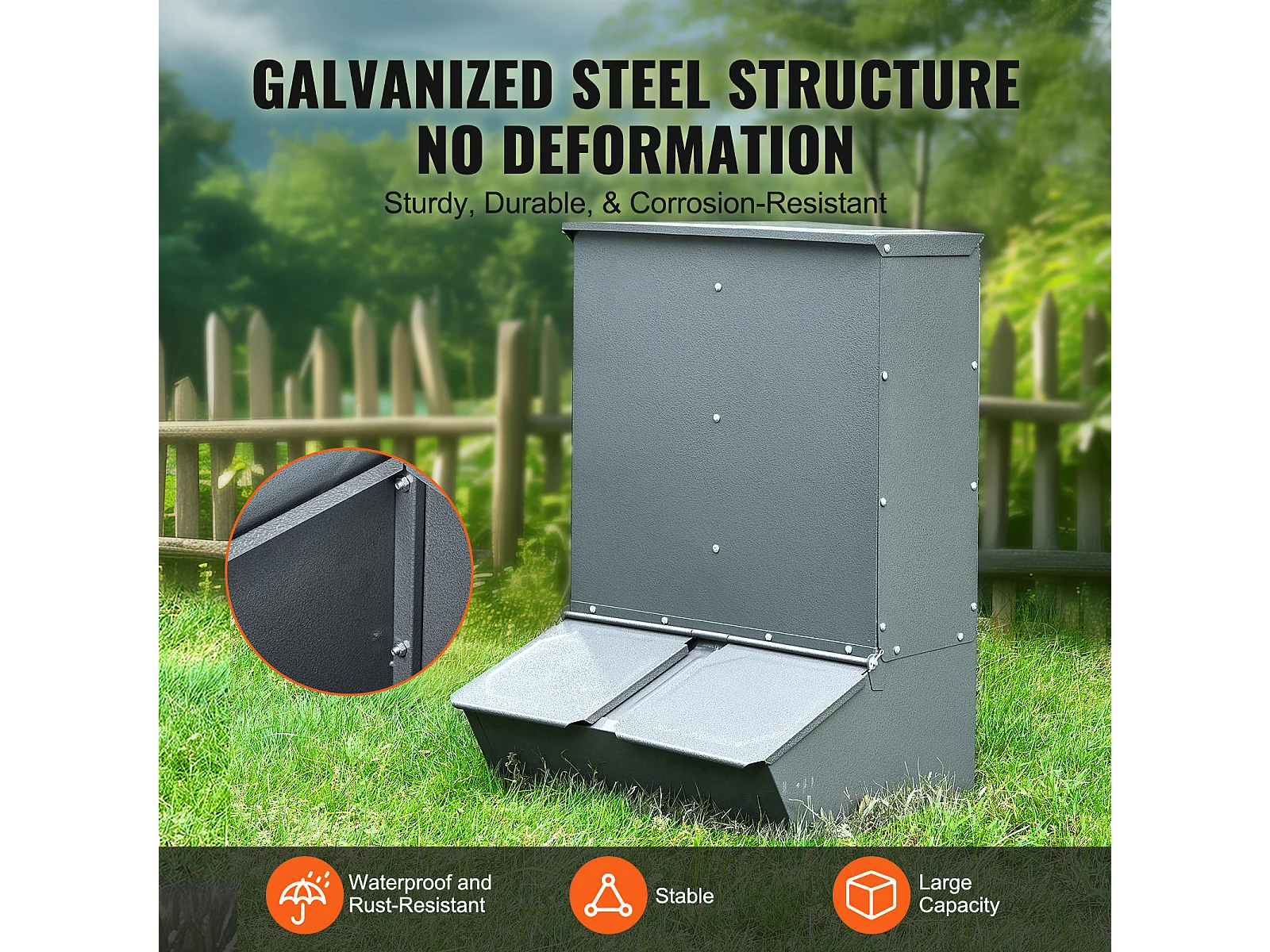 Comedouro Automático SucceBuy para Frangos, Aço Galvanizado, Capacidade de 11 kg, para 10 Frangos