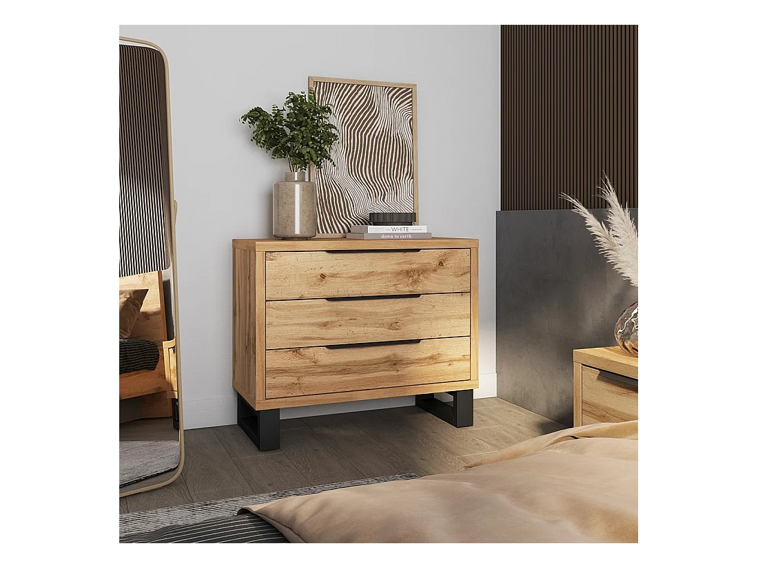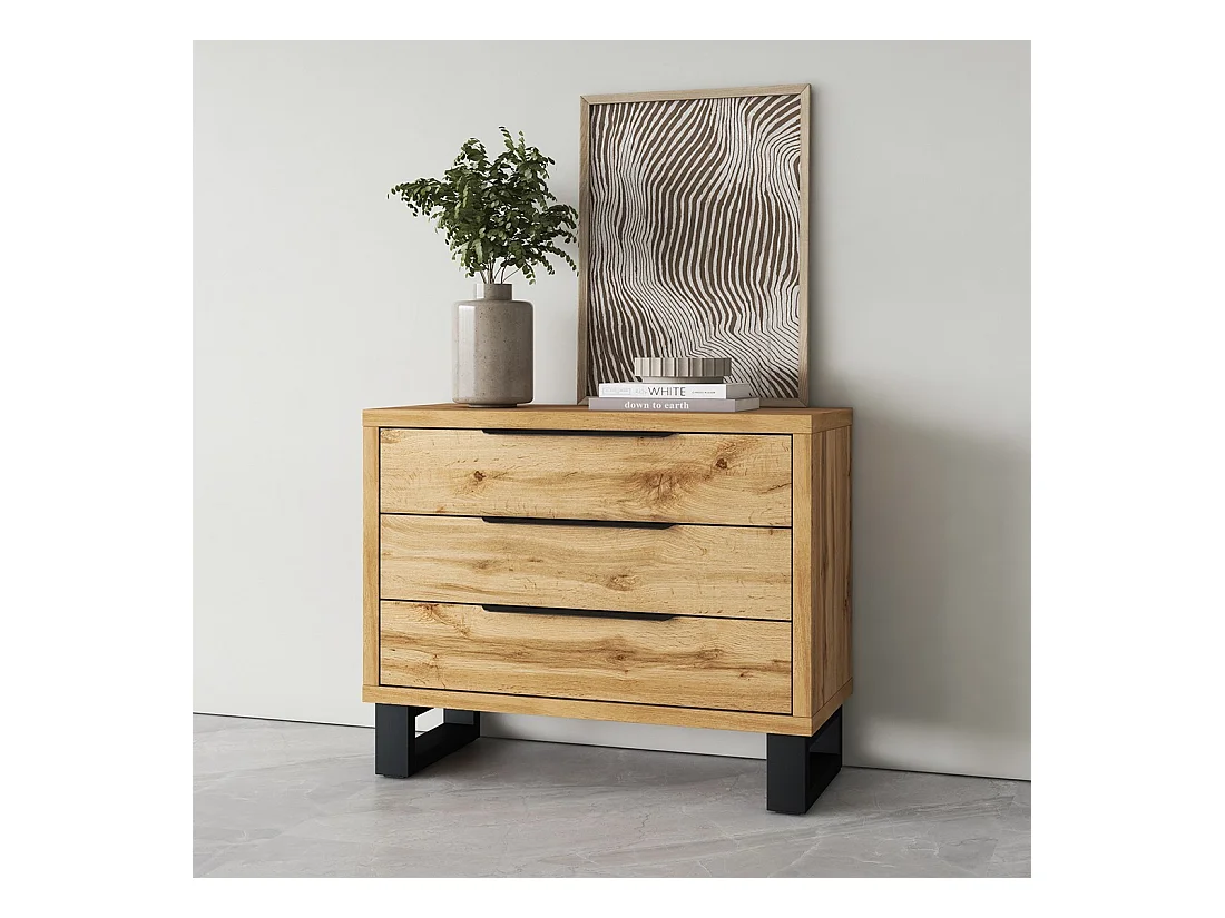 Commode MILOS – 3 tiroirs style industriel chêne brut et noir