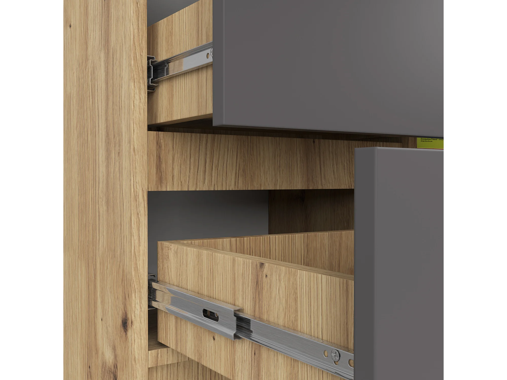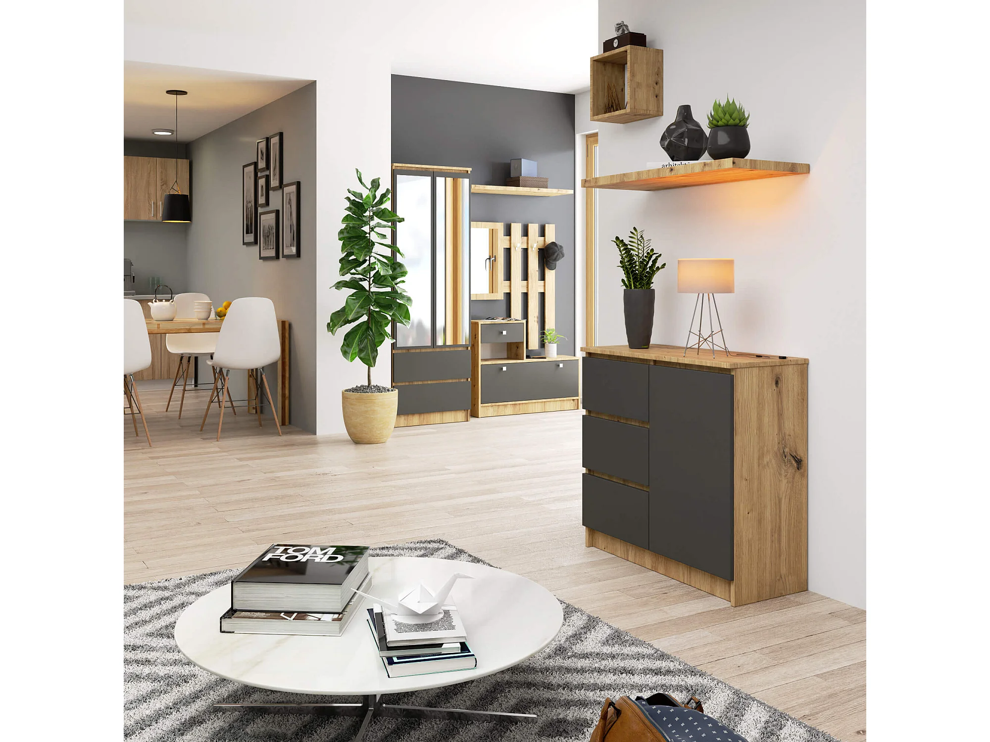 Cómoda com 3 gavetas e 3 nichos cor natural e antracite - LEANDRE