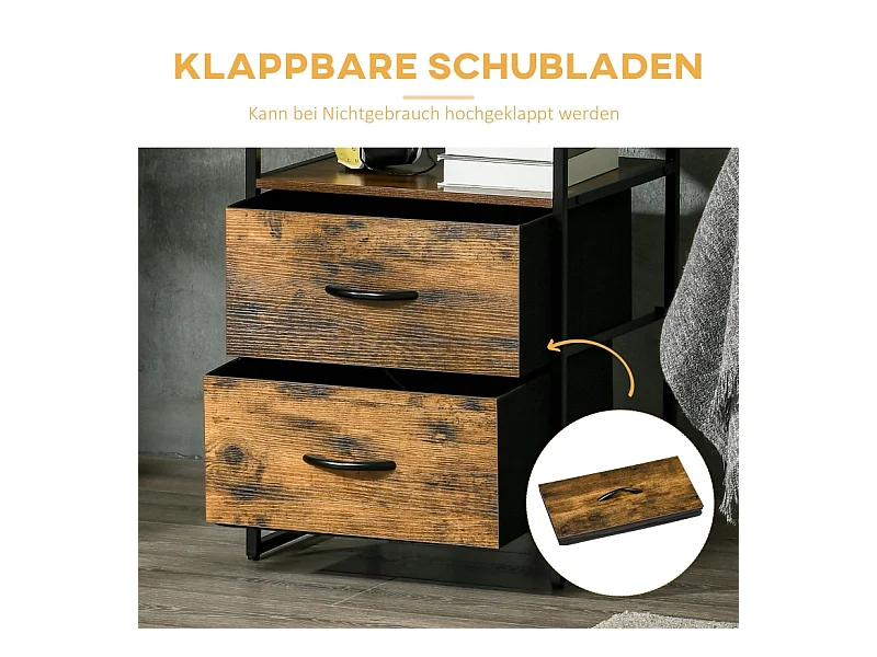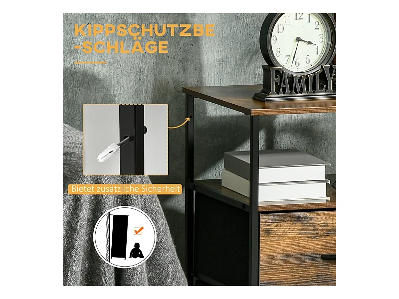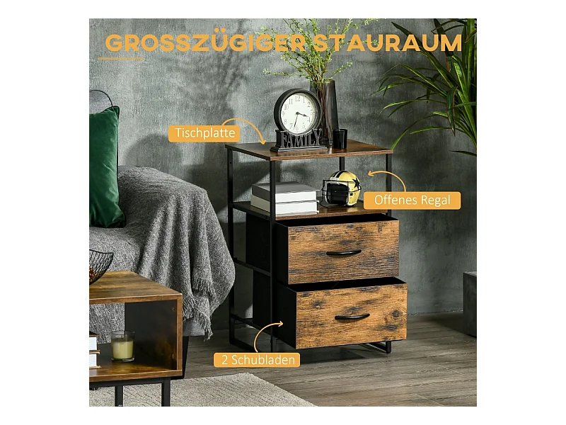 Cômoda 2 gavetas tecido metal estilo industrial sala rústico marrom 45 cm