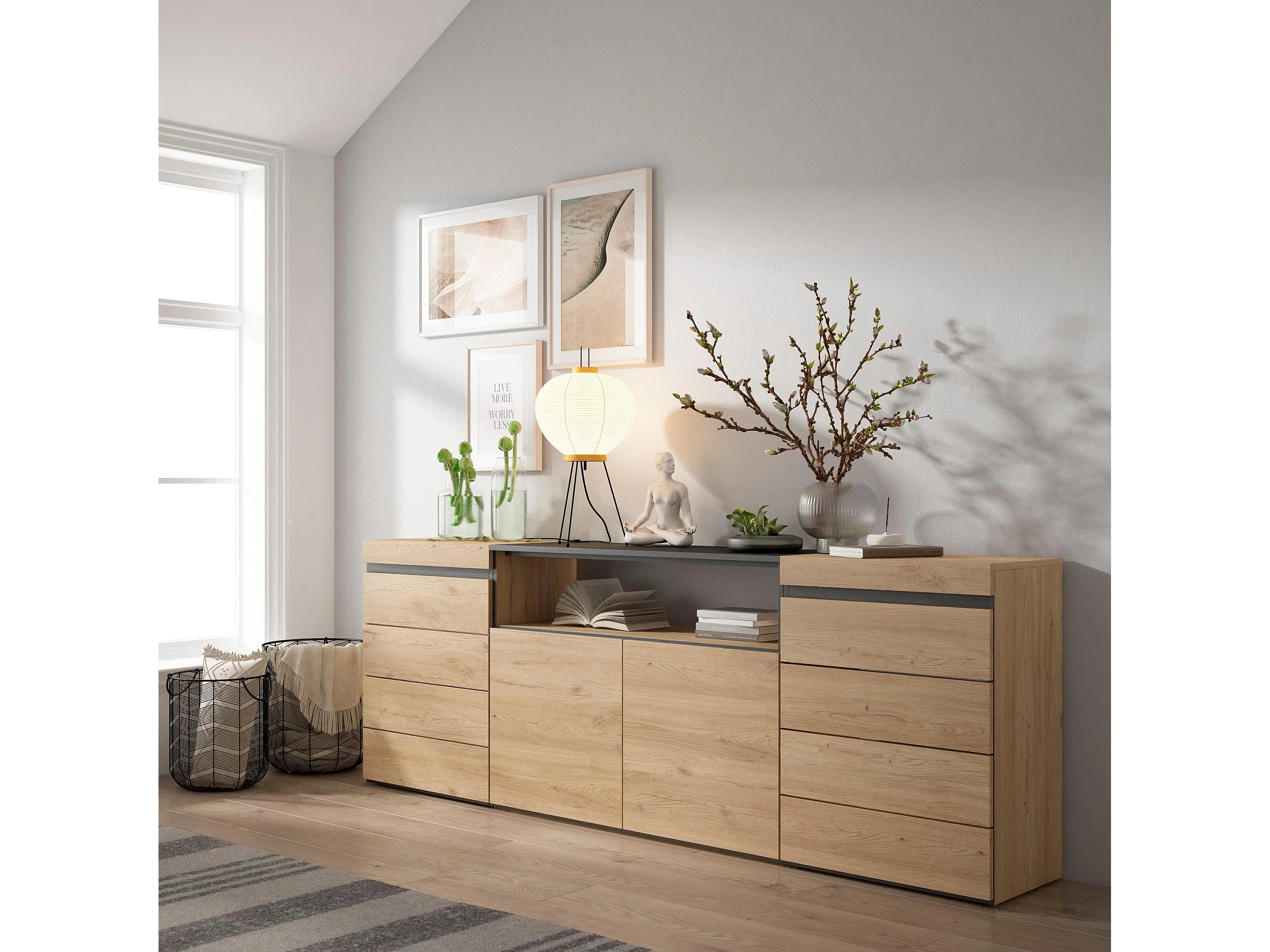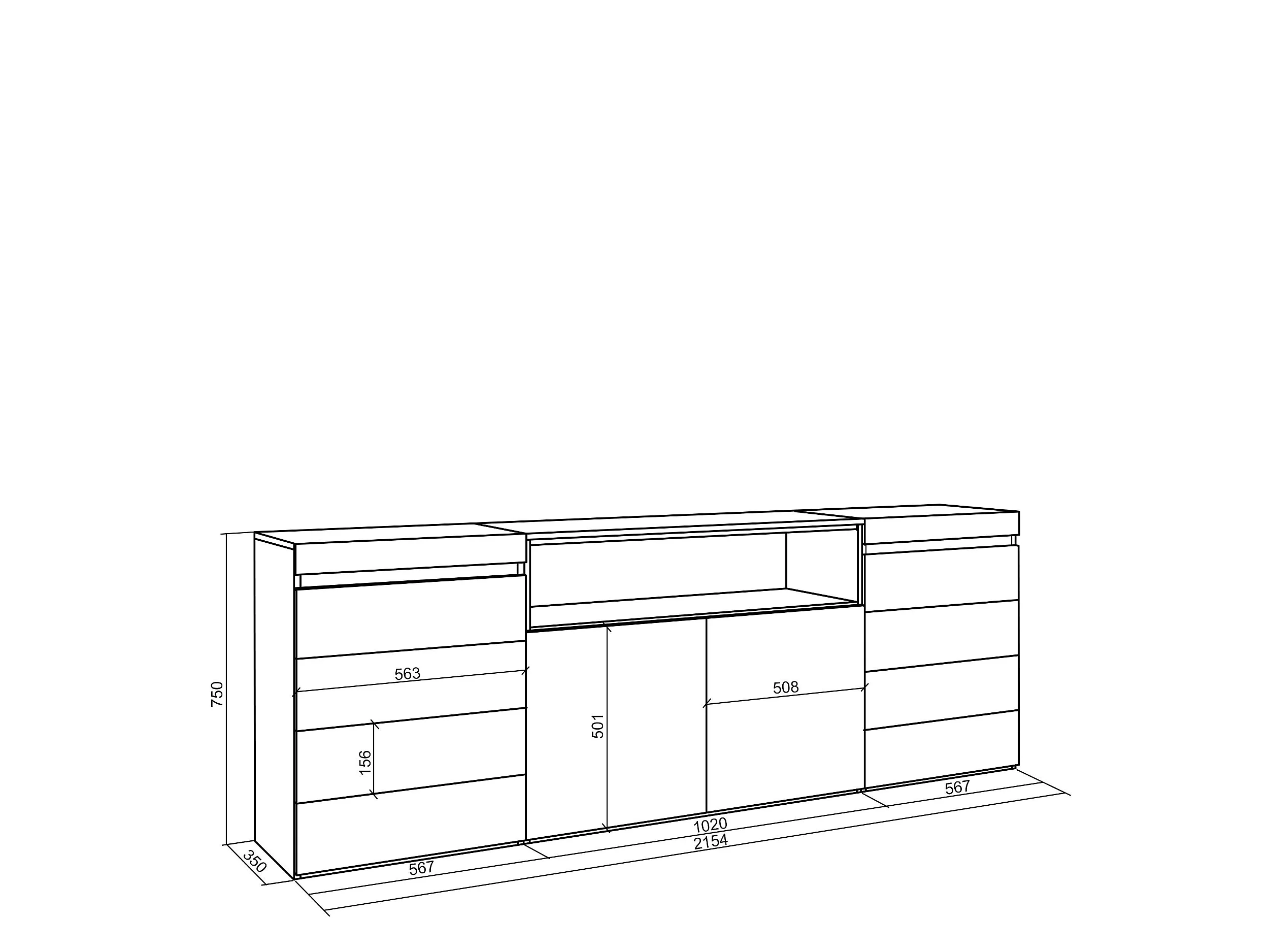 Cómoda, 214x35x75cm, Para quarto, dormitório, Camiseiro, Carvalho
