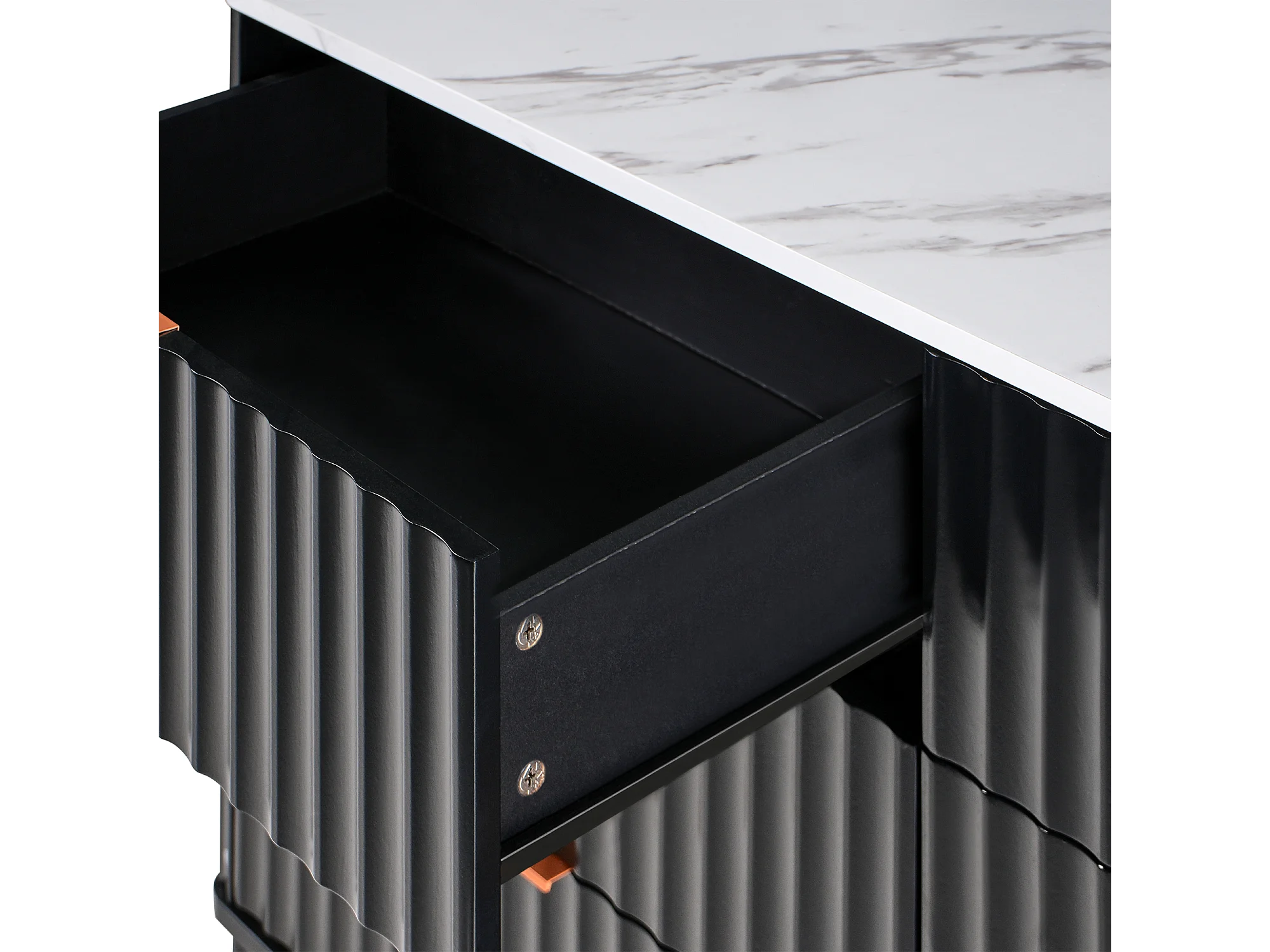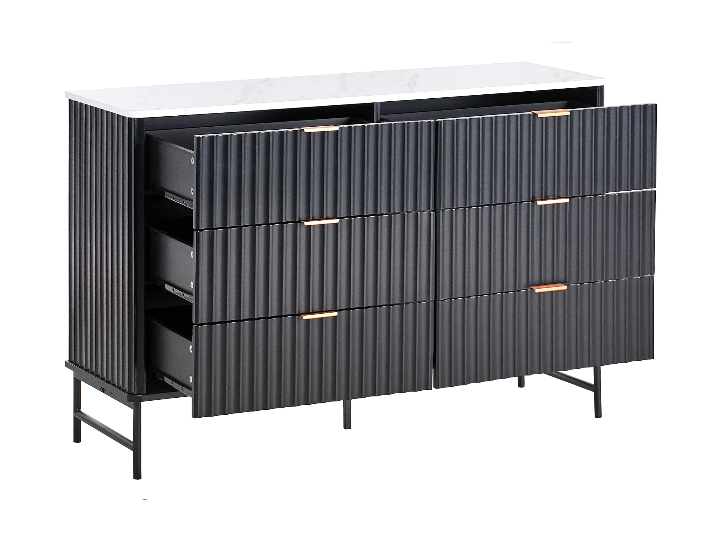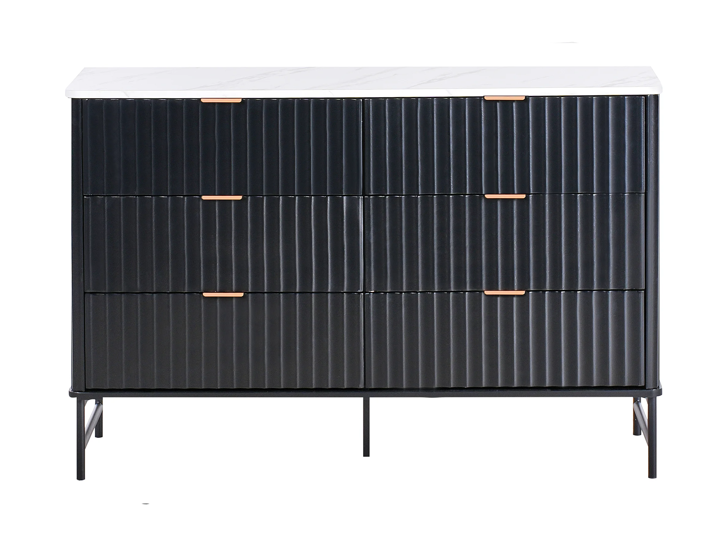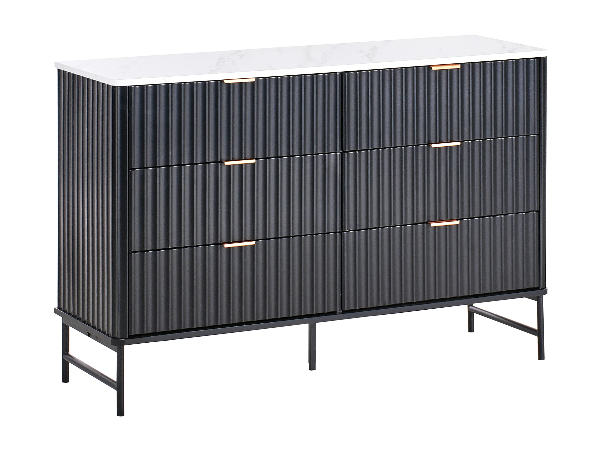 Cómoda 6 gavetas GLASTONBURY Mármore/Preto