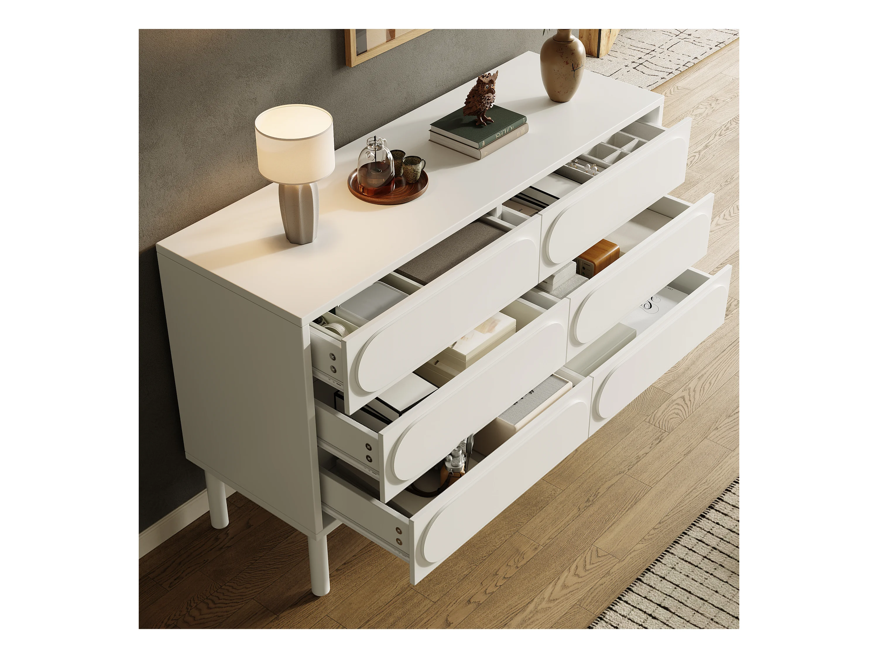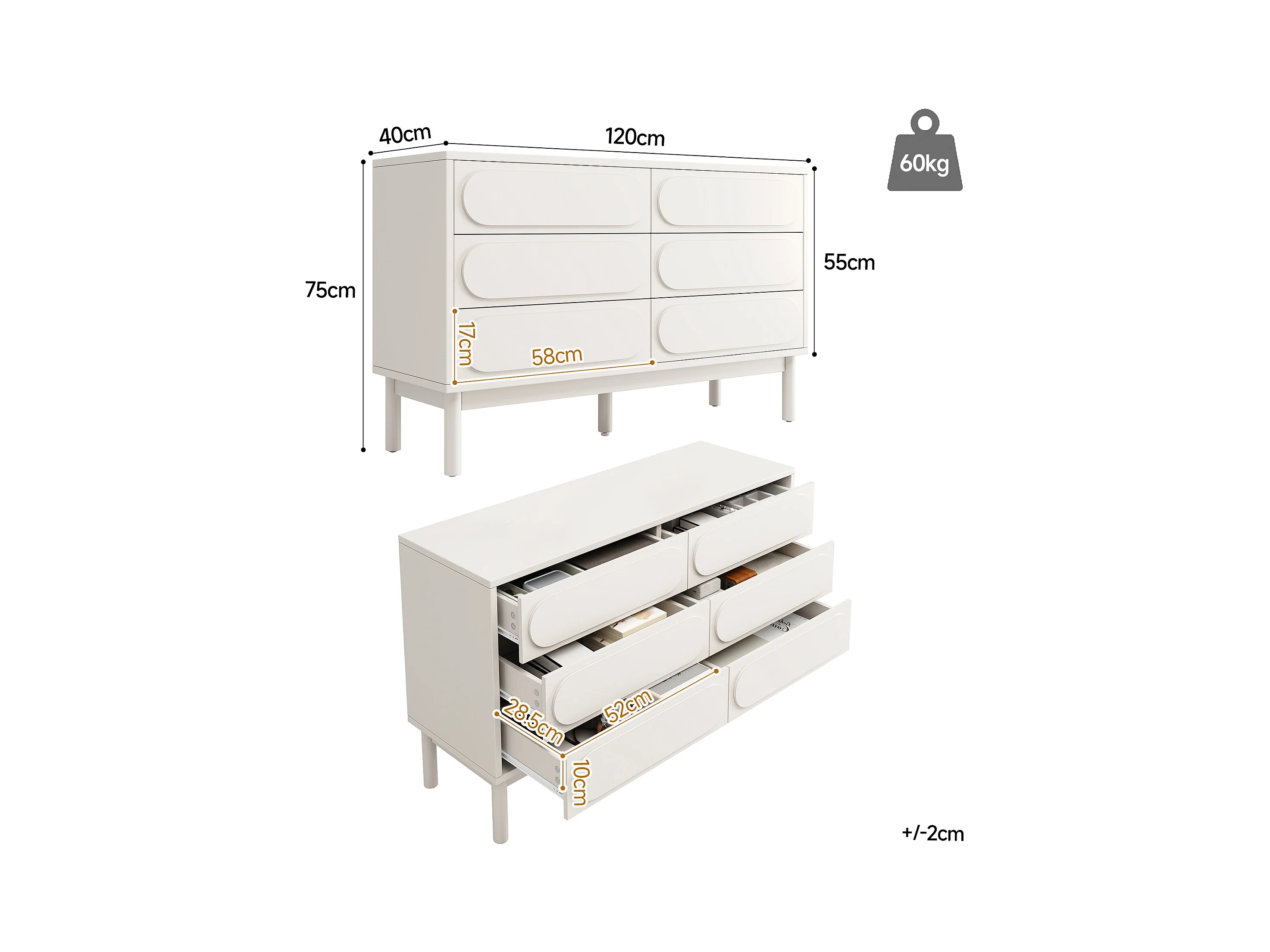 Cômoda 6 Gavetas MDF Pés Reguláveis 120x40x75cm Sala Quarto Branca