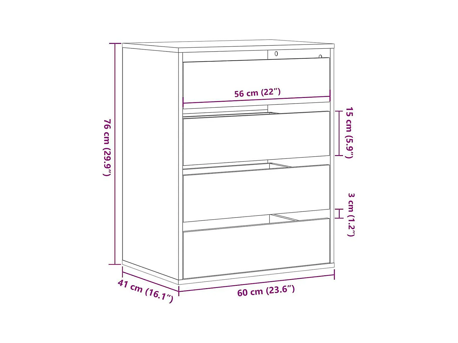 Cómoda 60x41x76 cm derivados de madeira cinzento cimento