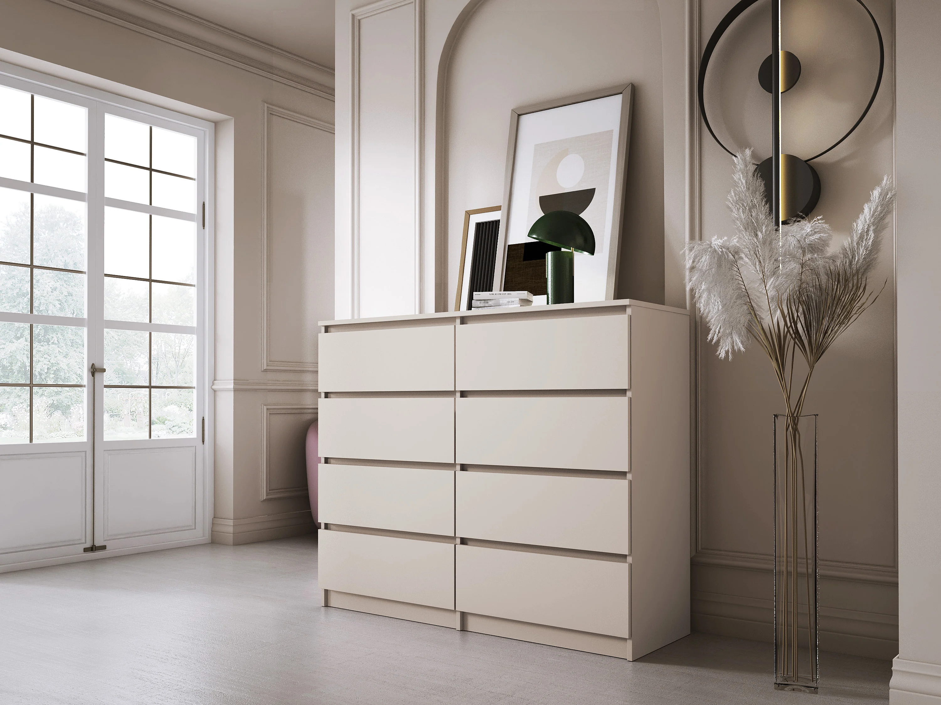 Cômoda: 8 gavetas, caxemira, 120 x 39 x 101 cm