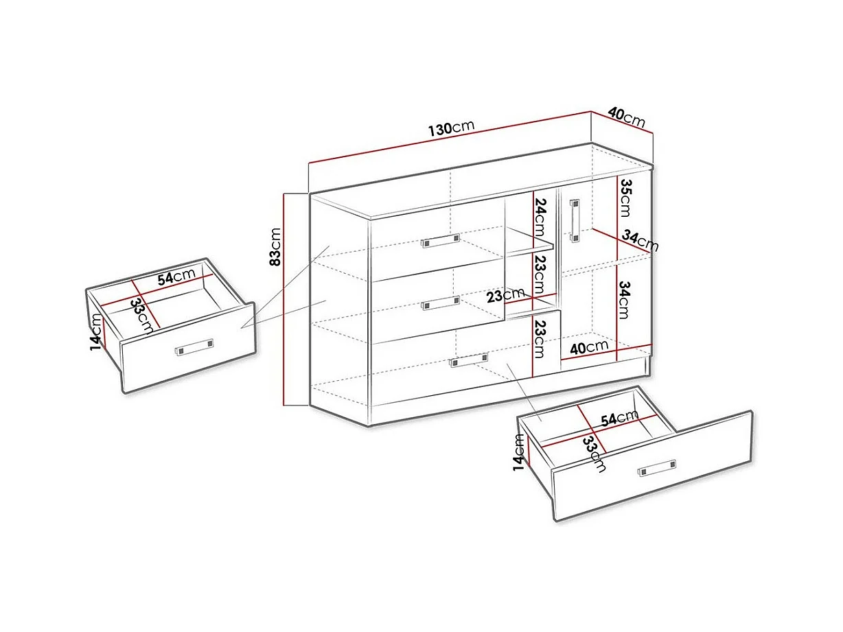 Cómoda Etrmoru 140, Com gavetas e portas, Número de gavetas: 3