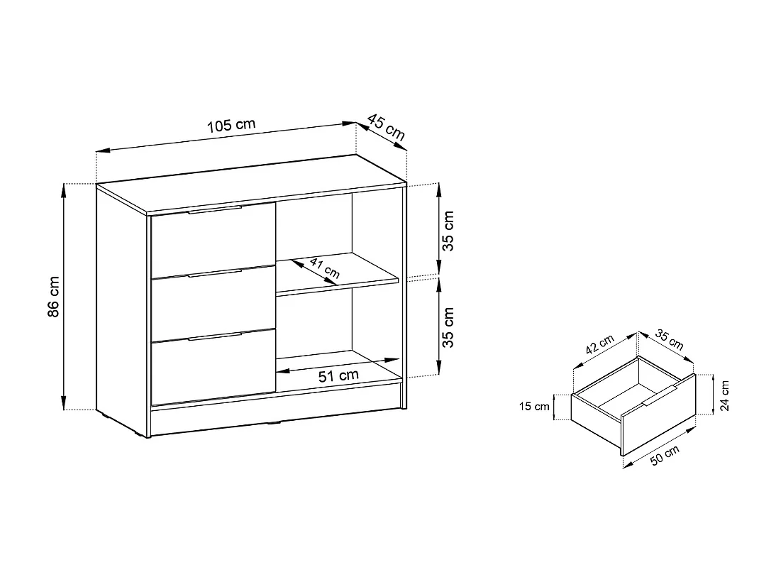 Cómoda AMBIHOME ELLY 01 Cinza 105x45x86cm