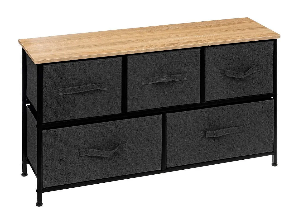 Cômoda baixa Tissa 5 gavetas quarto carvalho claro cinza aço 100x55 cm