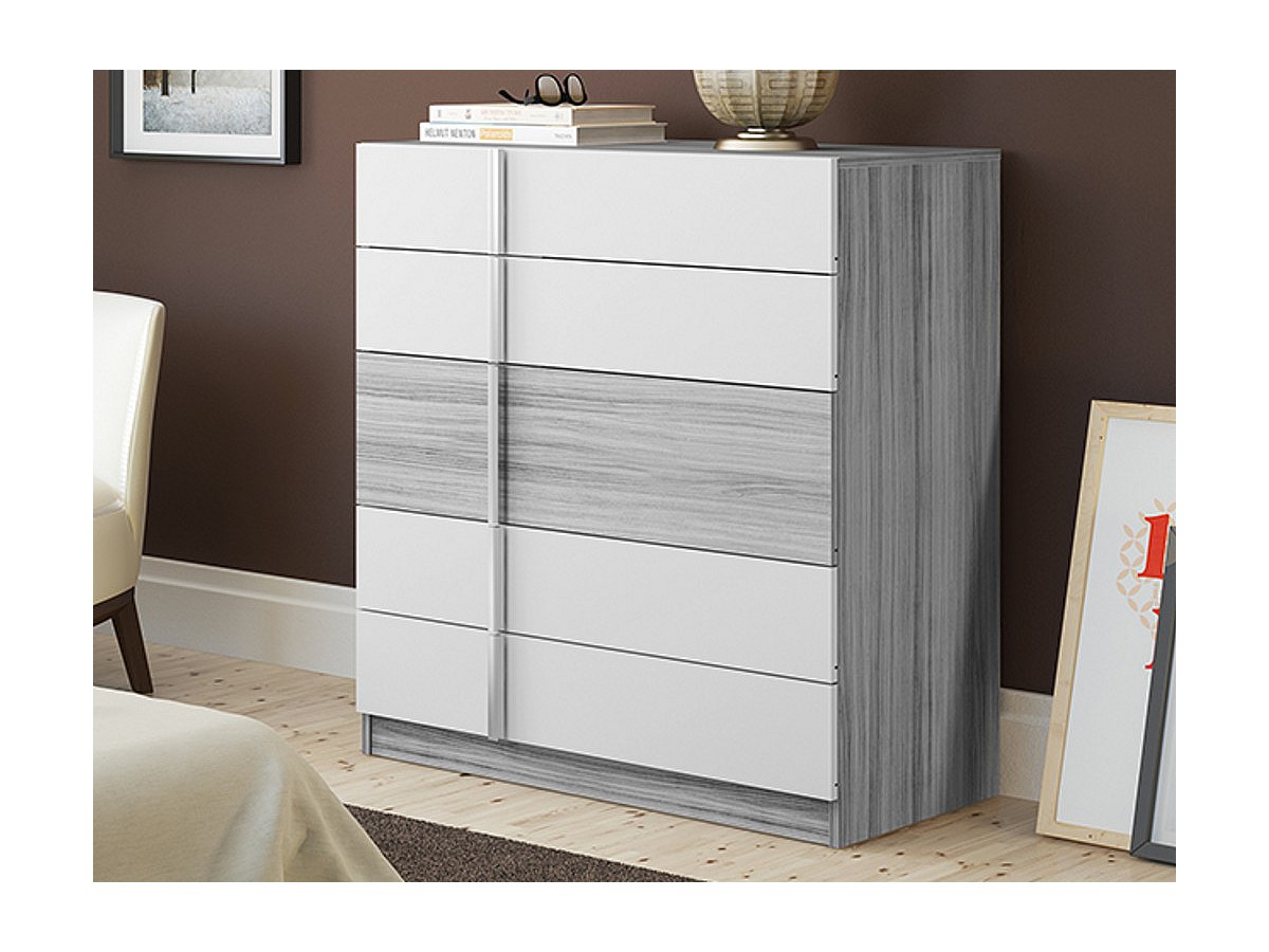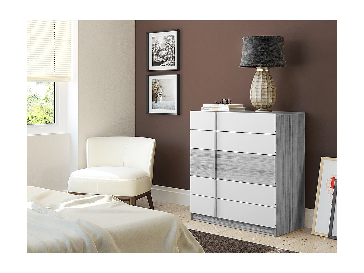 Cómoda BODIL - 5 gavetas - Cinza e branco