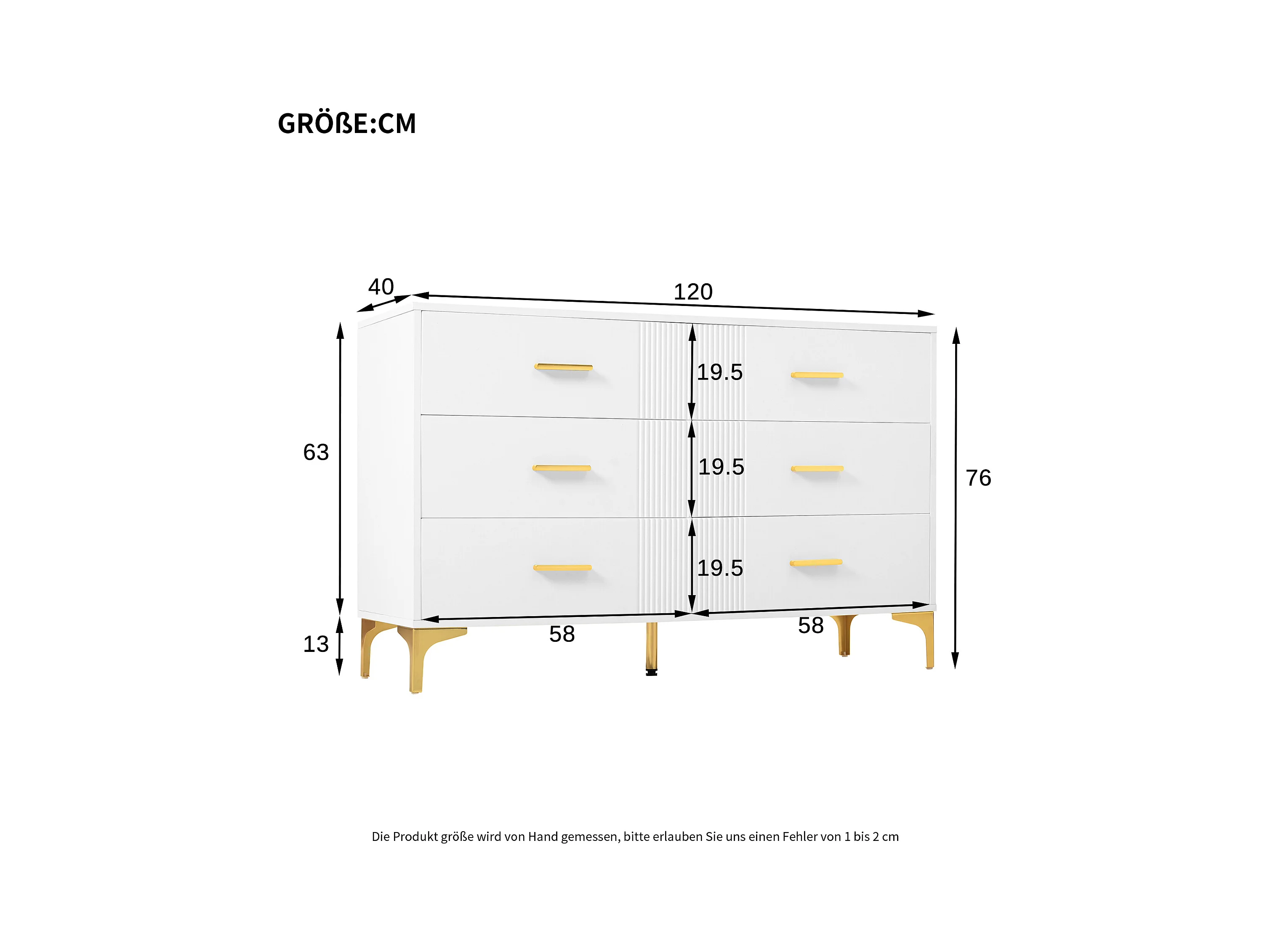 Cómoda branca, 6 gavetas, 120 x 40 x 76 cm