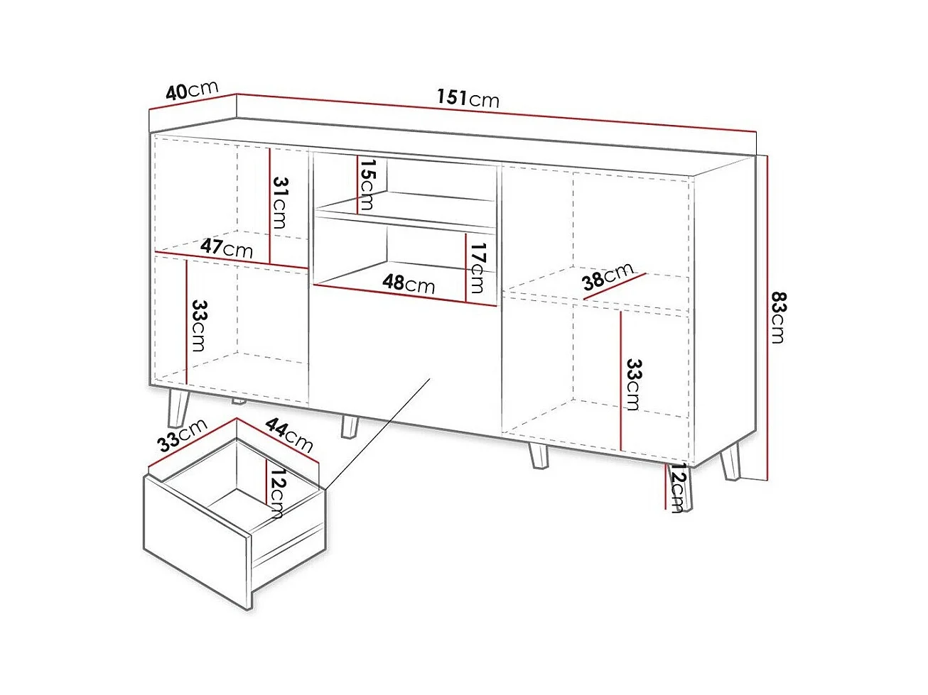Cómoda Levmari 100, Com gavetas e portas, Número de gavetas: 1