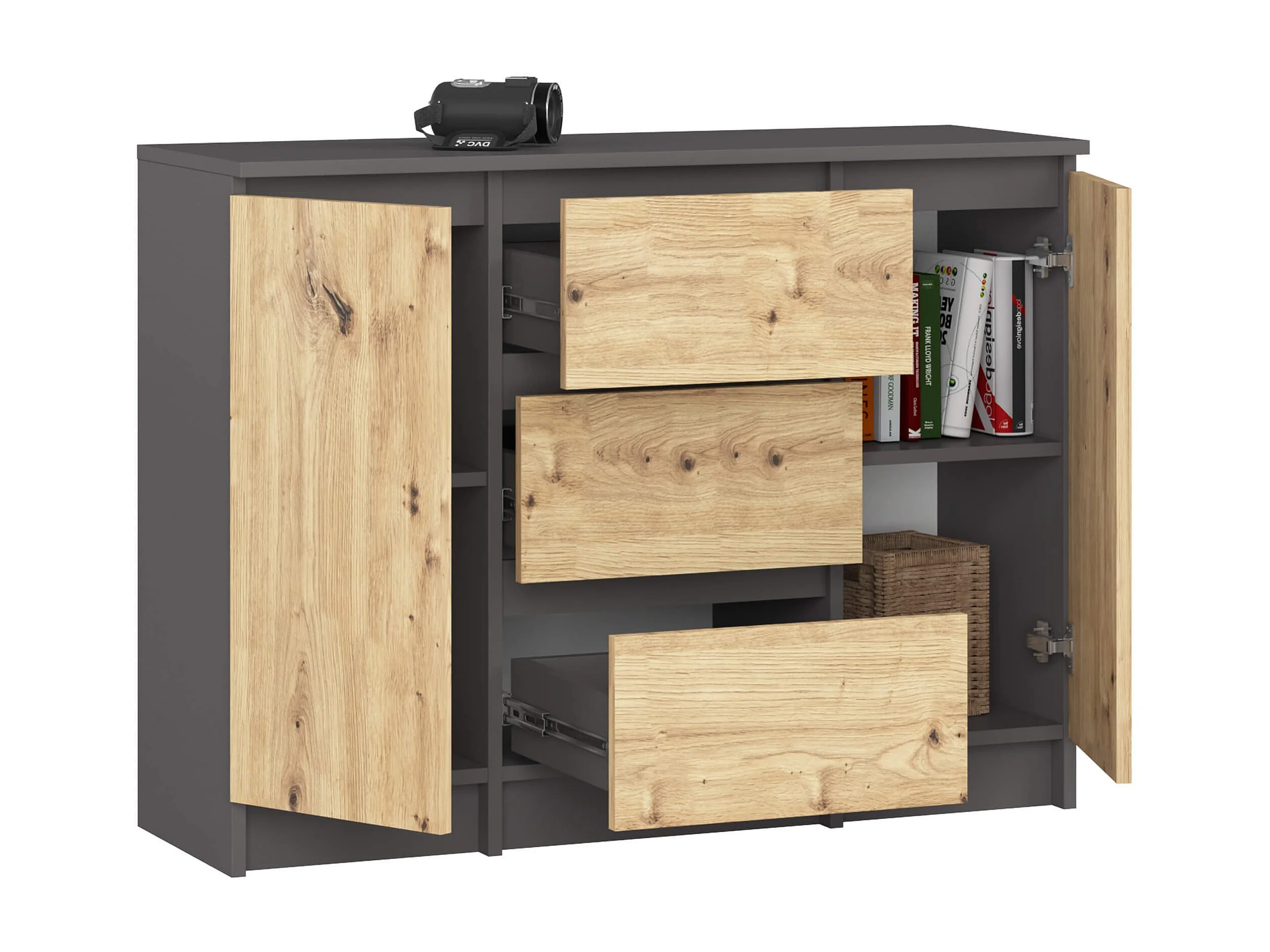 Cômoda Clássica Grafite/Dália Artisan com 3 Gavetas e 2 Portas