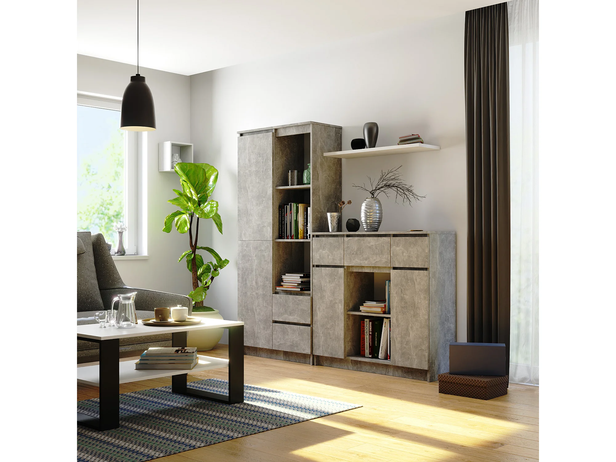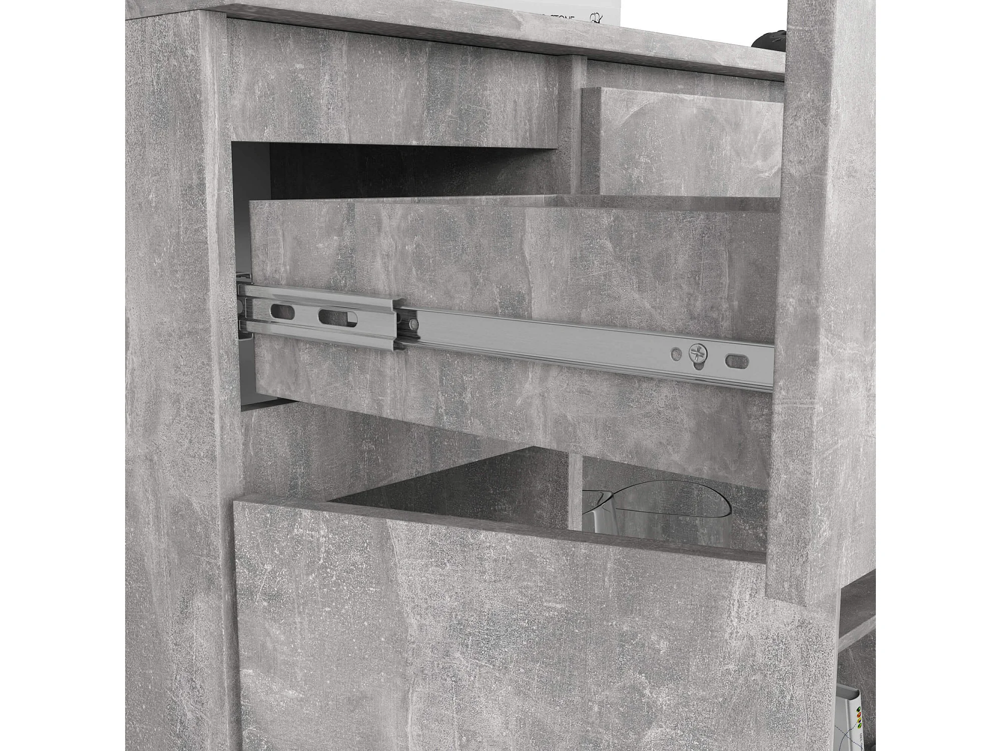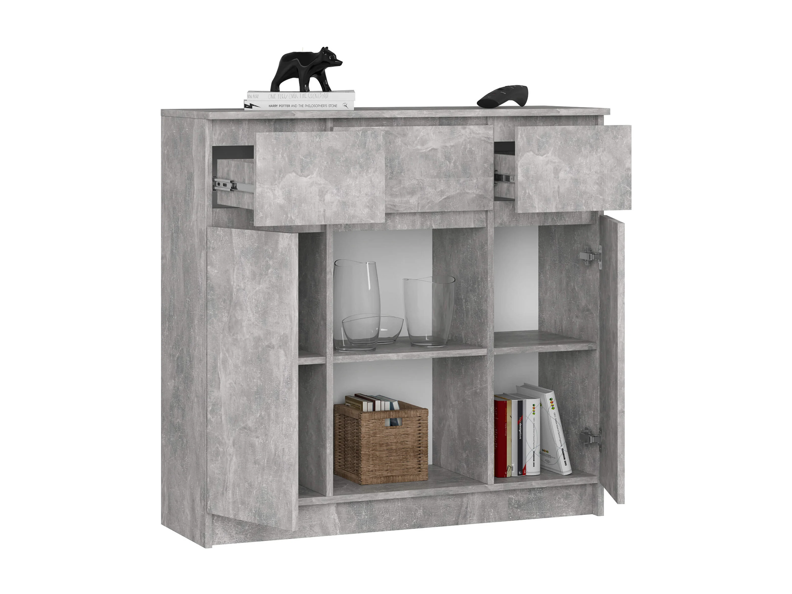 Cômoda Clássica K100 2D 3G 1P Betão Mat, 101x98x35cm, 6 Prateleiras, 3 Gavetas, Portas de Bater, Montagem DIY