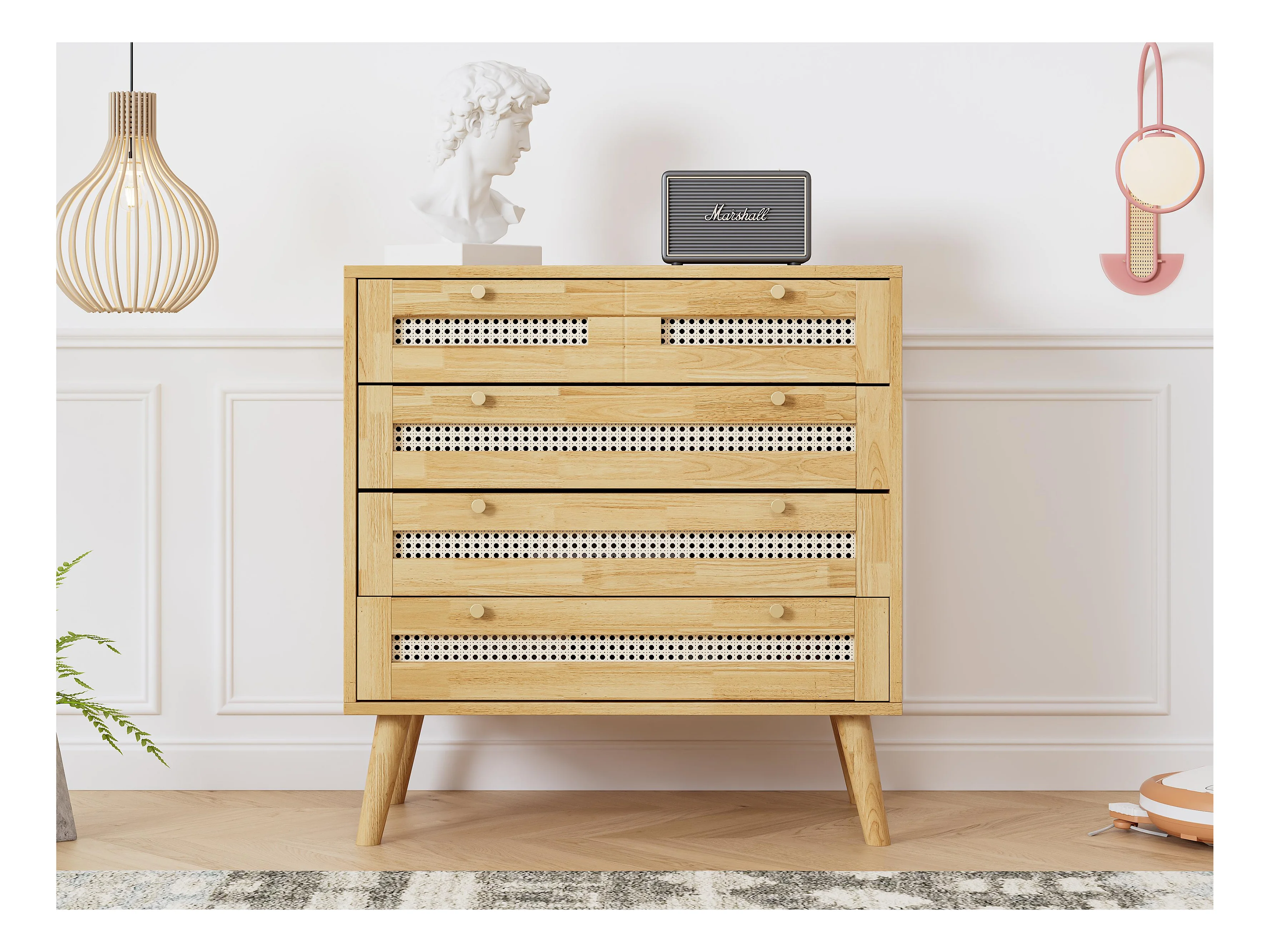 Cómoda com 3 gavetas e 1 compartimento de aba - em madeira e vime - Natural