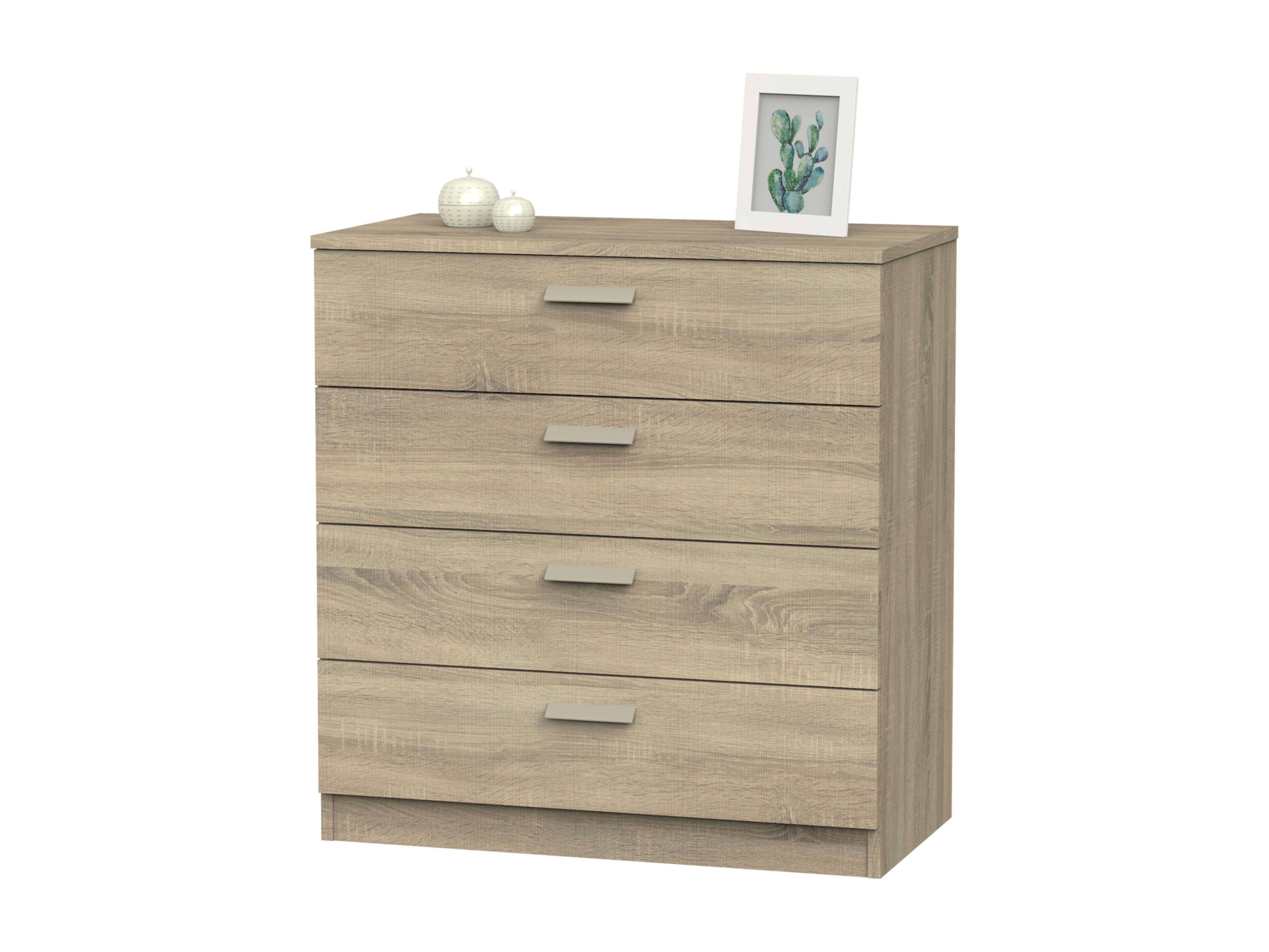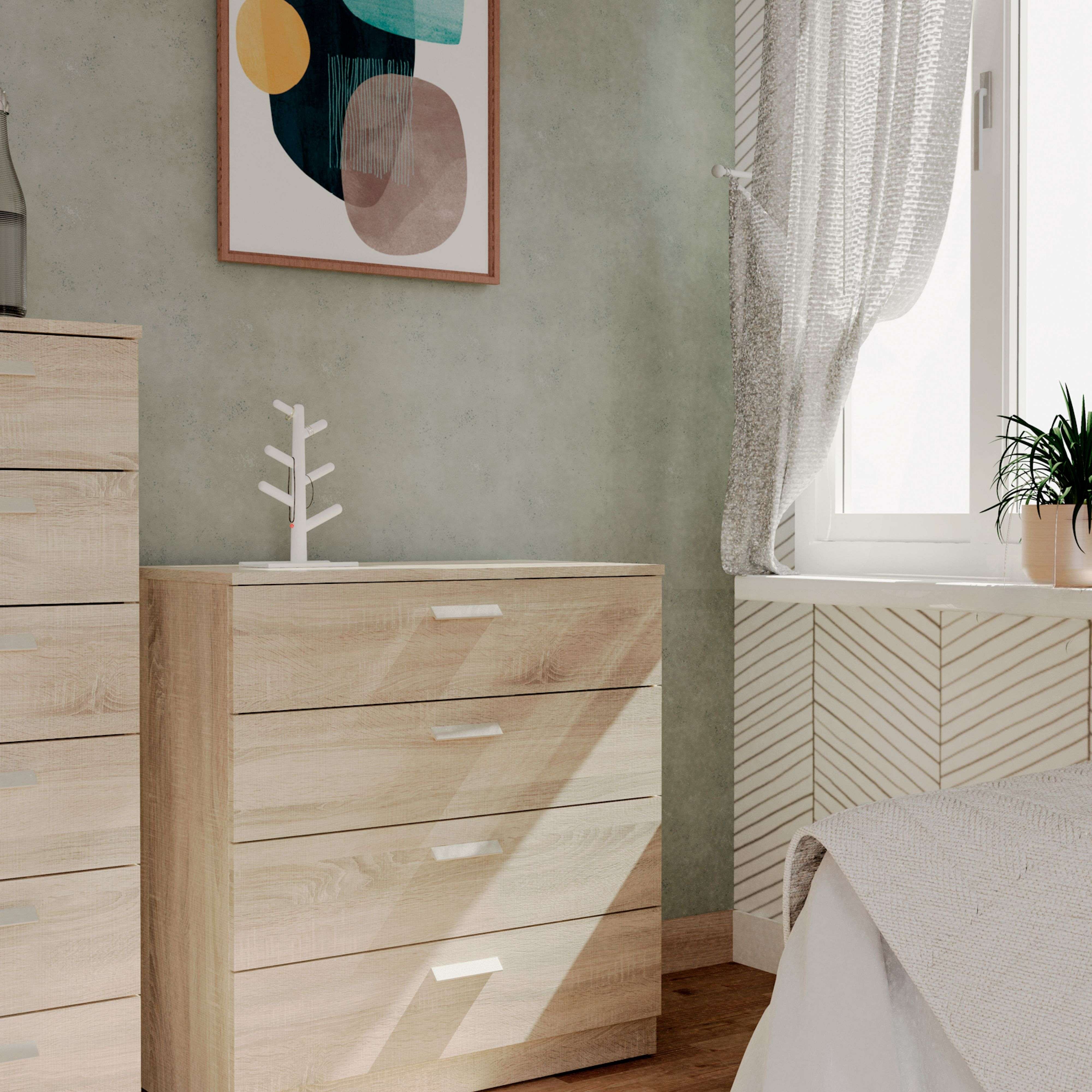 Cômoda com 4 gavetas e guias de metal, branco fosco do Tibete ou carvalho cambriano, 74x78 cm