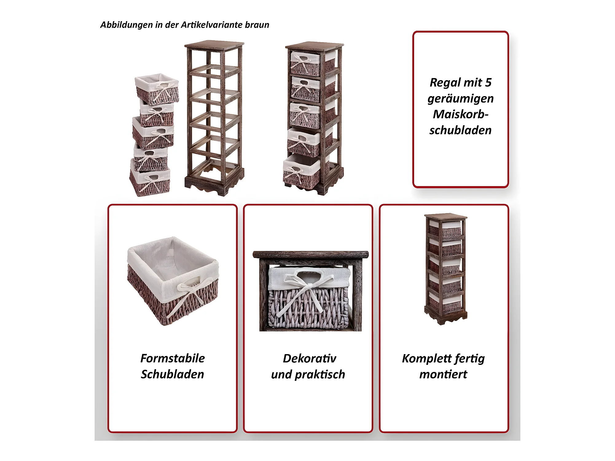 Cómoda com 5 gavetas para cestos, castanho
