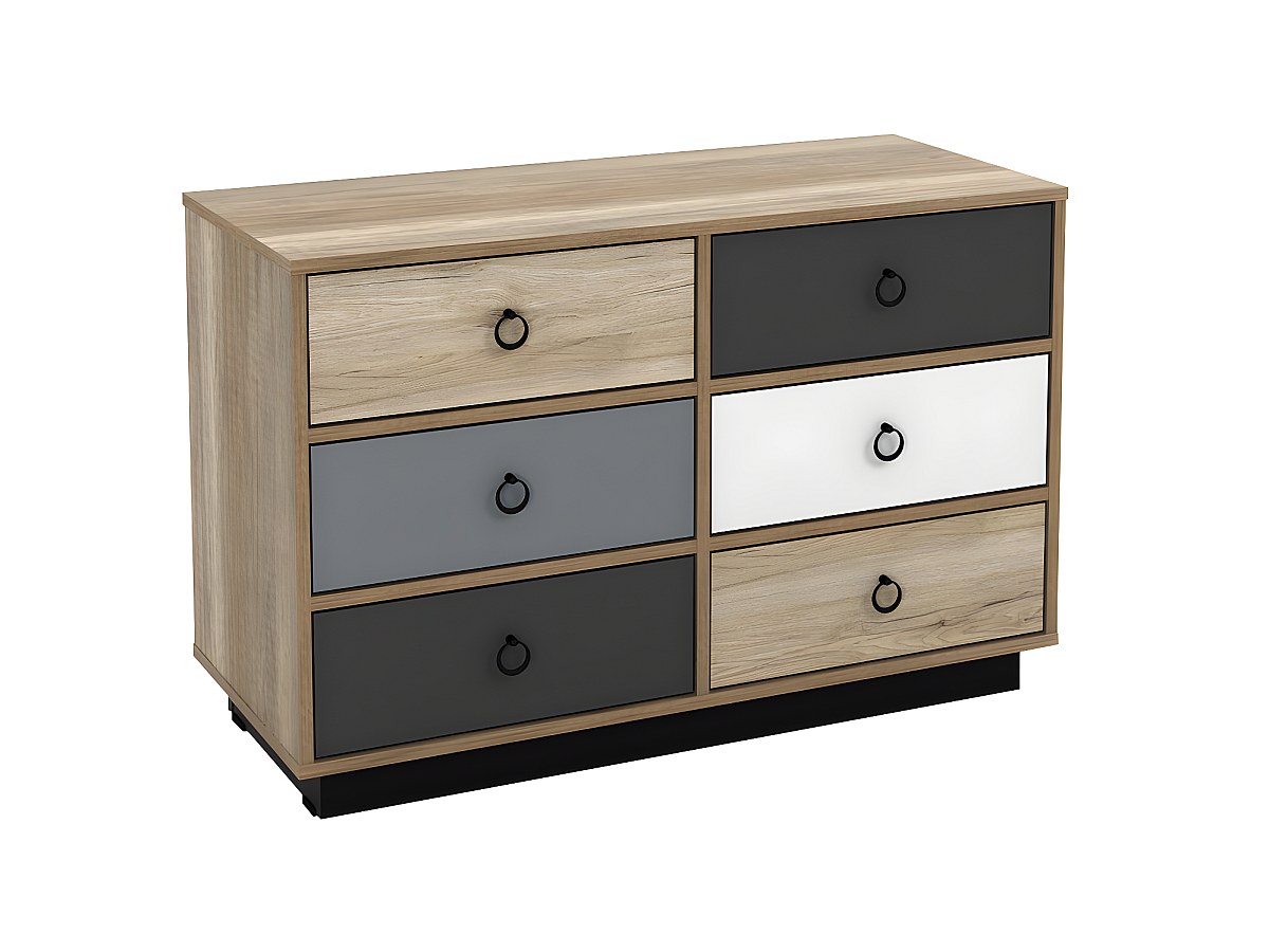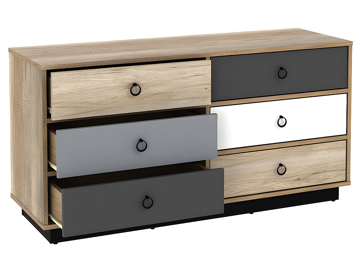 Cómoda com 6 gavetas cor carvalho, branco e cinza - KRYPTON