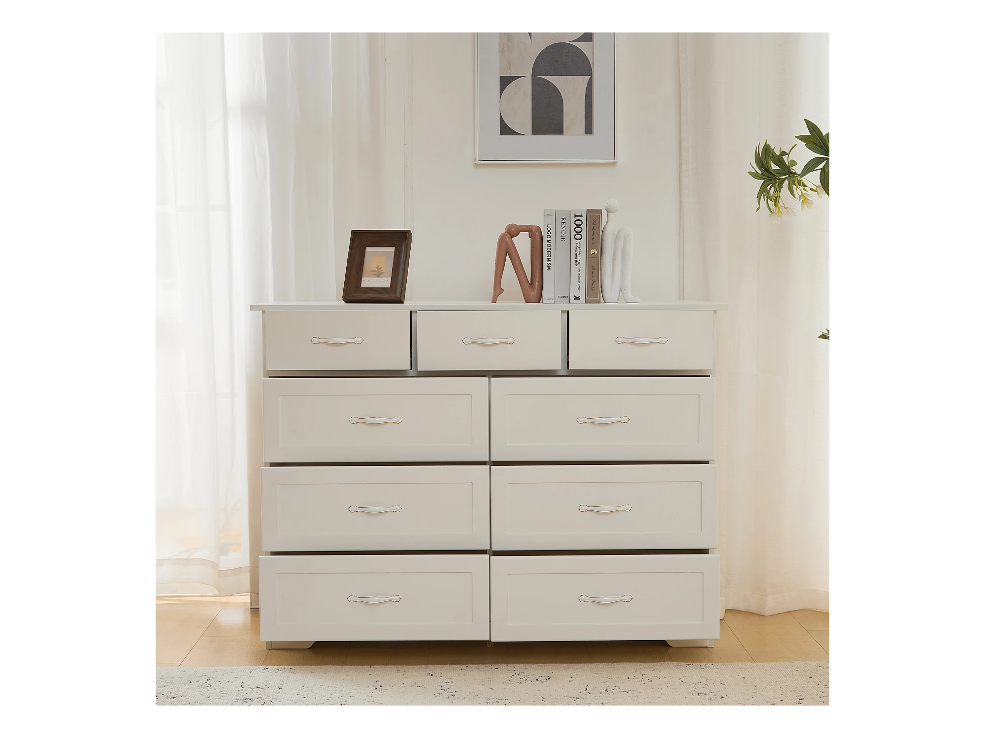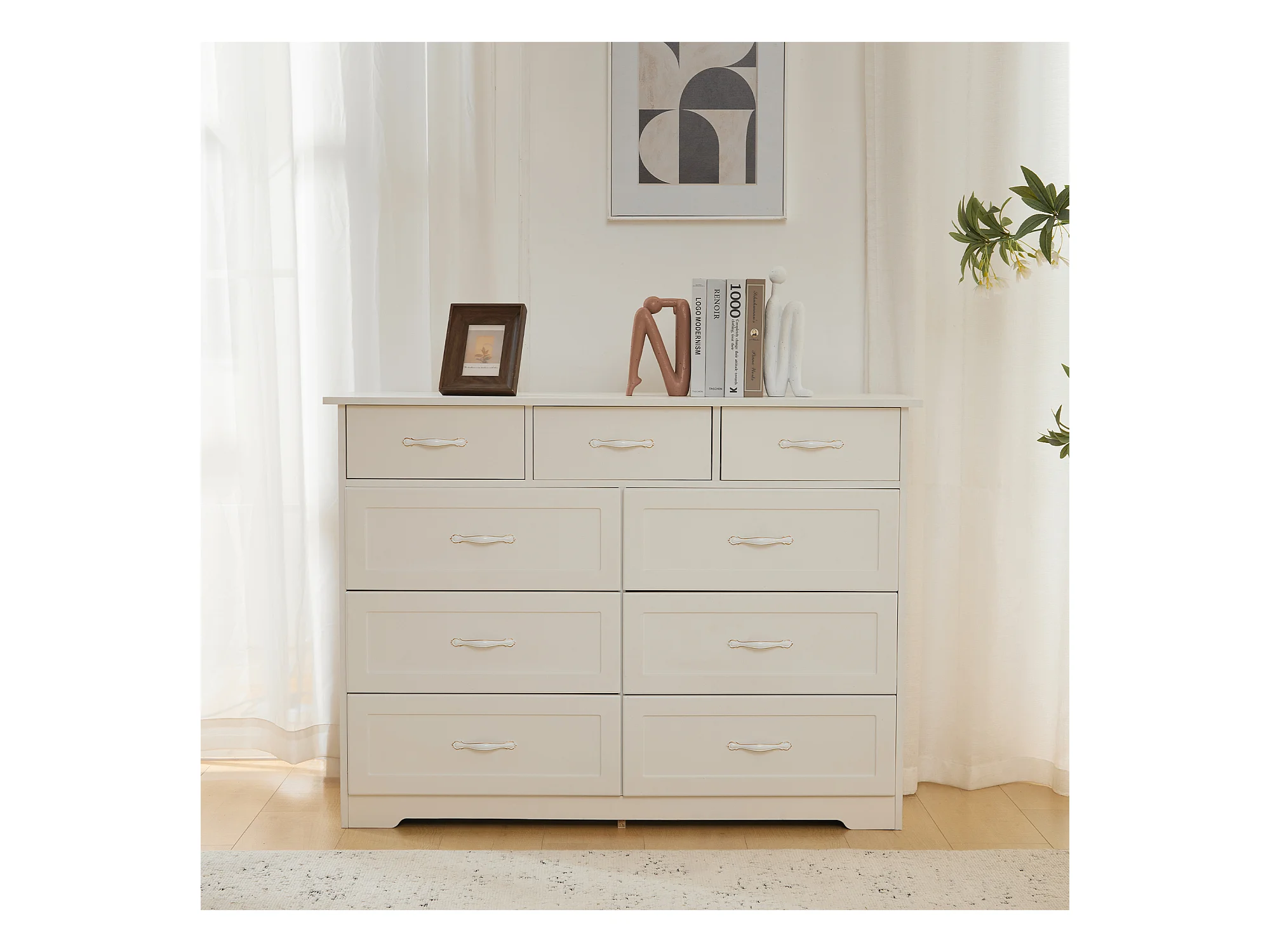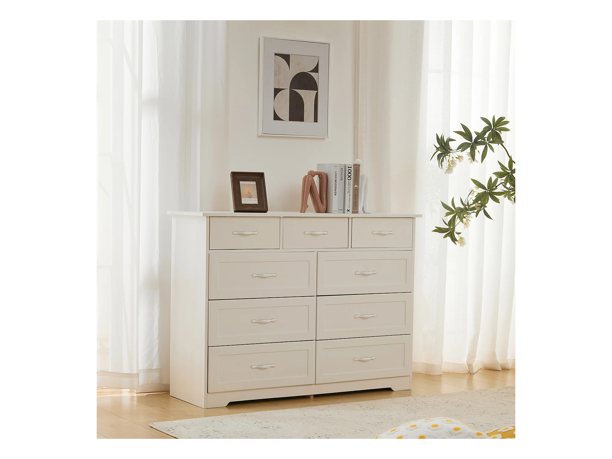 Cômoda com 9 gavetas - 110 x 40 x 72 - Padrão ondulado pintado - MDF, Aglomerado - Branco