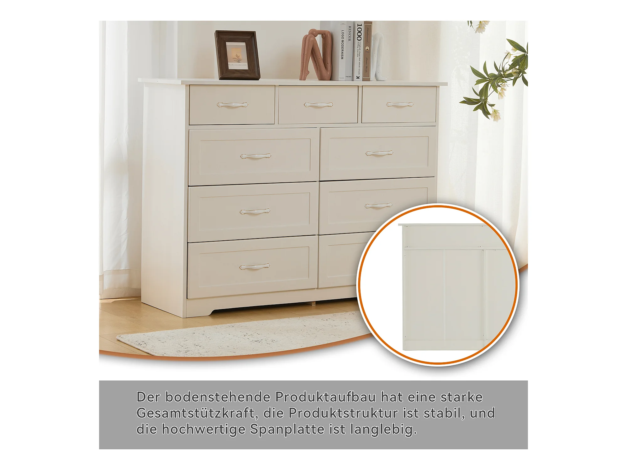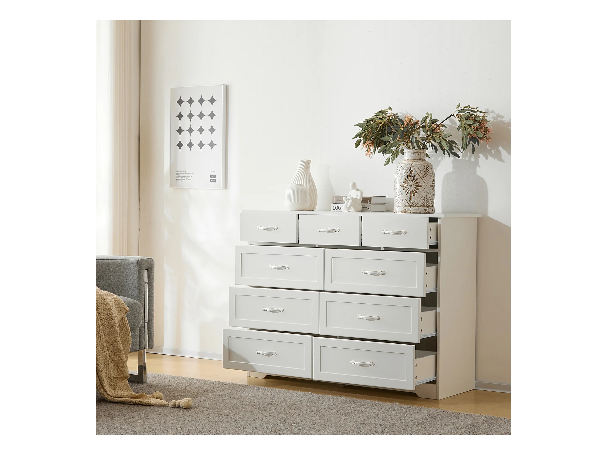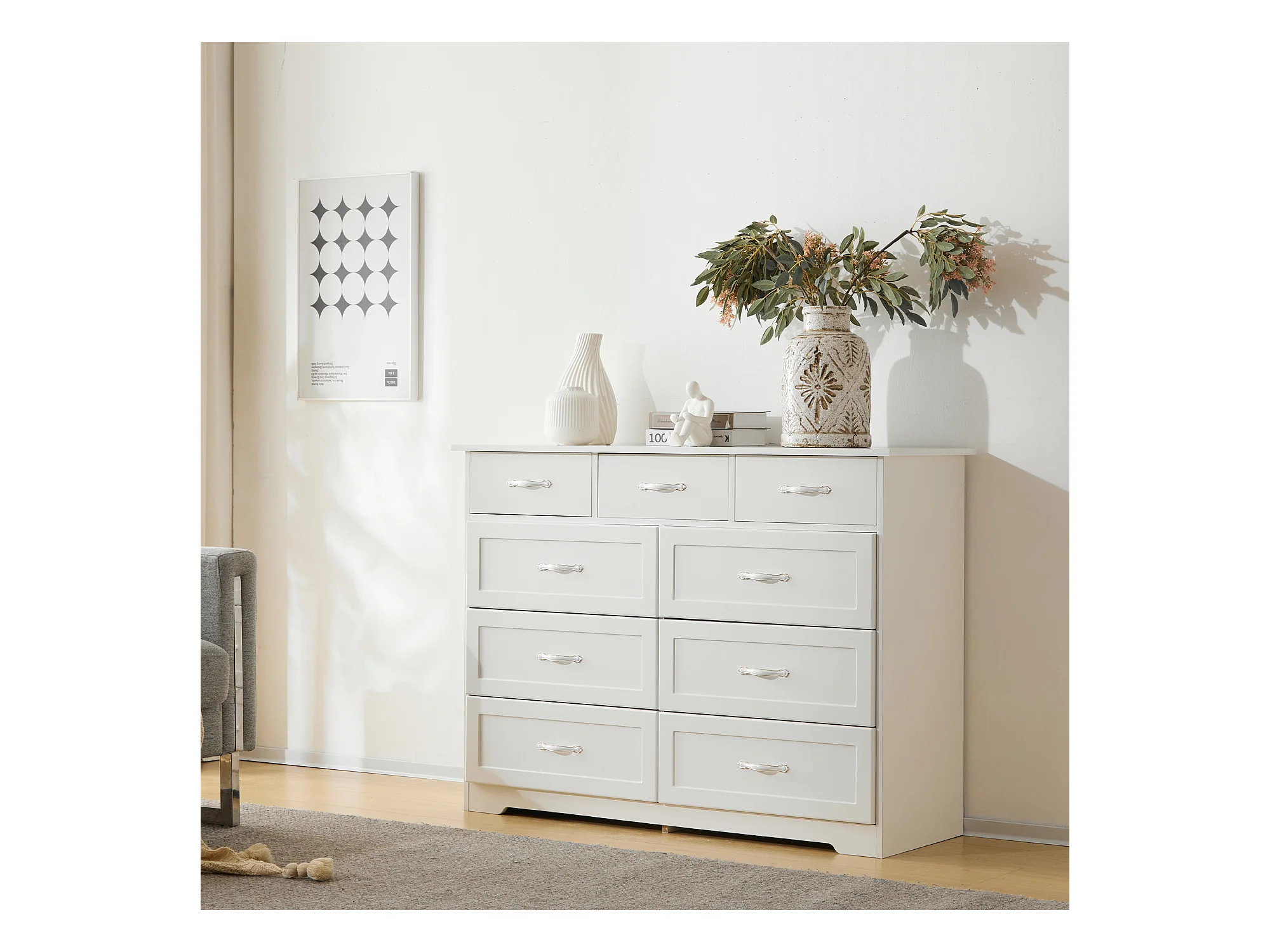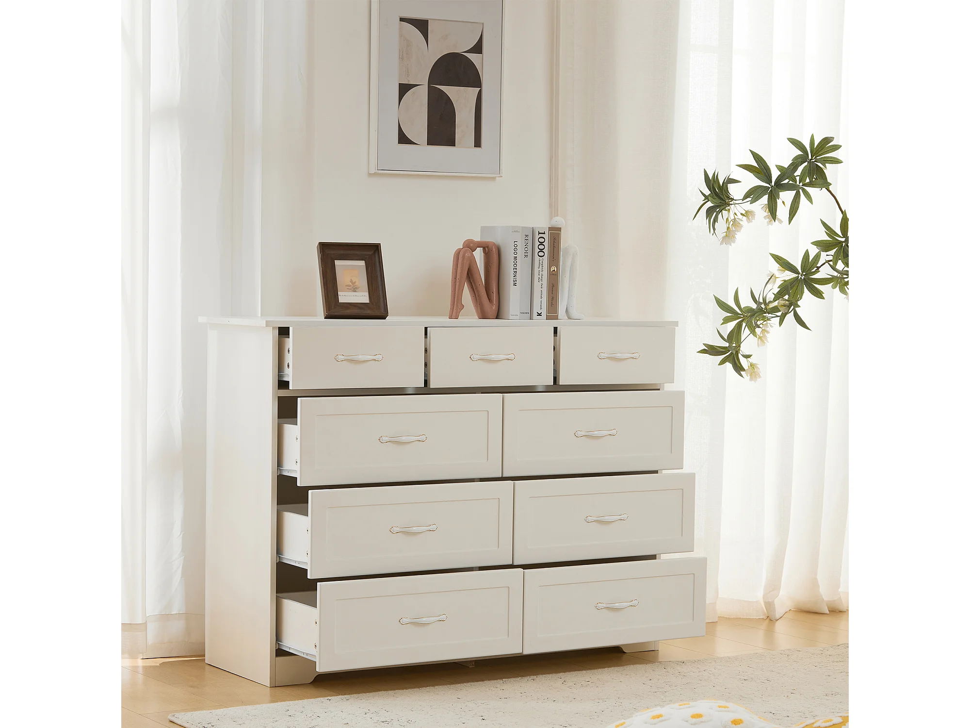 Cômoda com 9 gavetas - 110 x 40 x 72 - Padrão ondulado pintado - MDF, Aglomerado - Branco