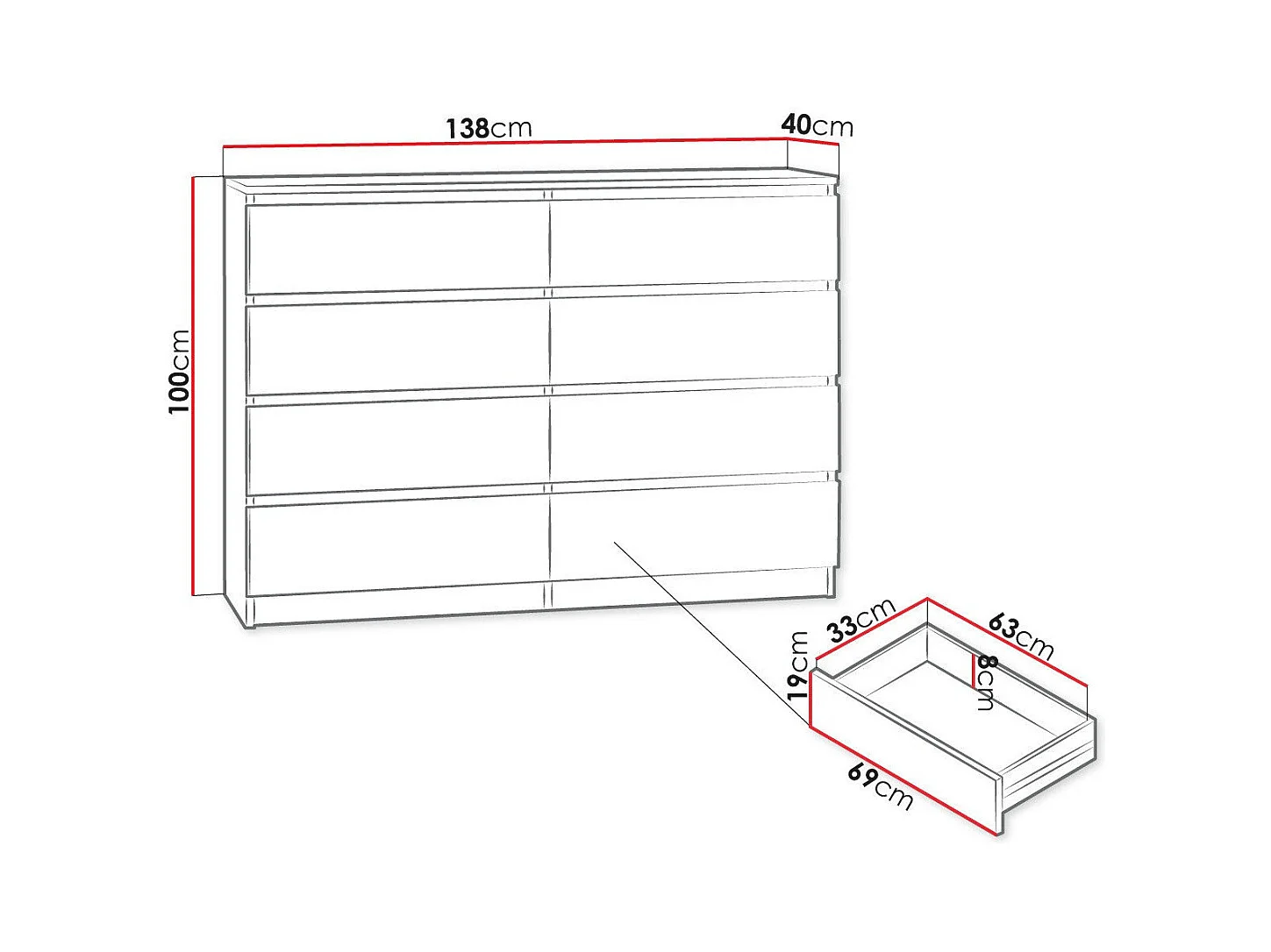 Cómoda Comfivo 162, Com gavetas, Número de gavetas: 8, 10x14x4cm
