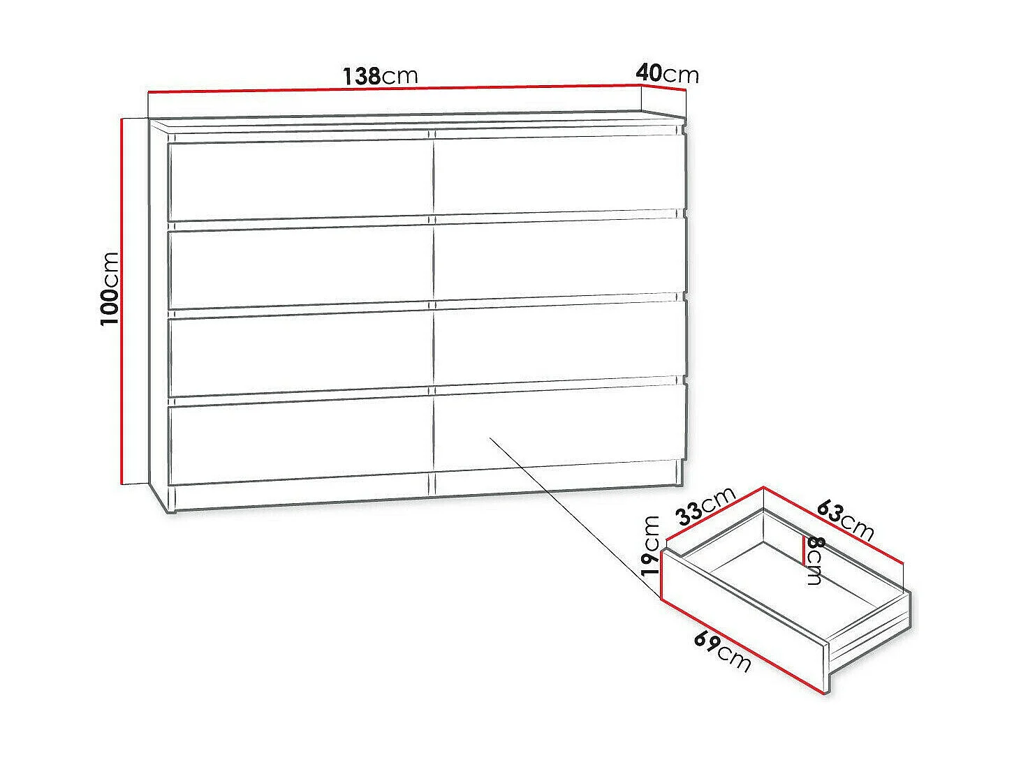 Cómoda Comfivo Structor III, Com gavetas, Número de gavetas: 8