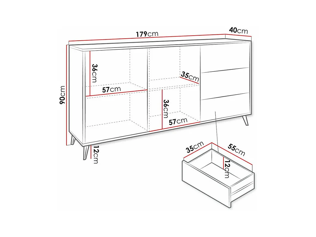 Cómoda Serfeno 115, Com gavetas e portas, Número de gavetas: 4