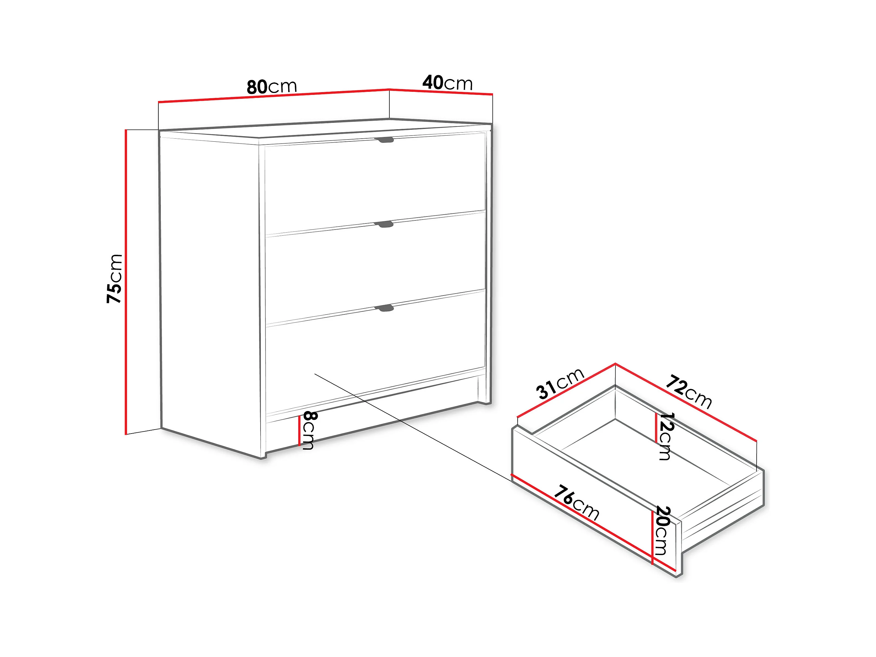 Cómoda Comfivo Larmire 102, Com gavetas, 8x8x4cm