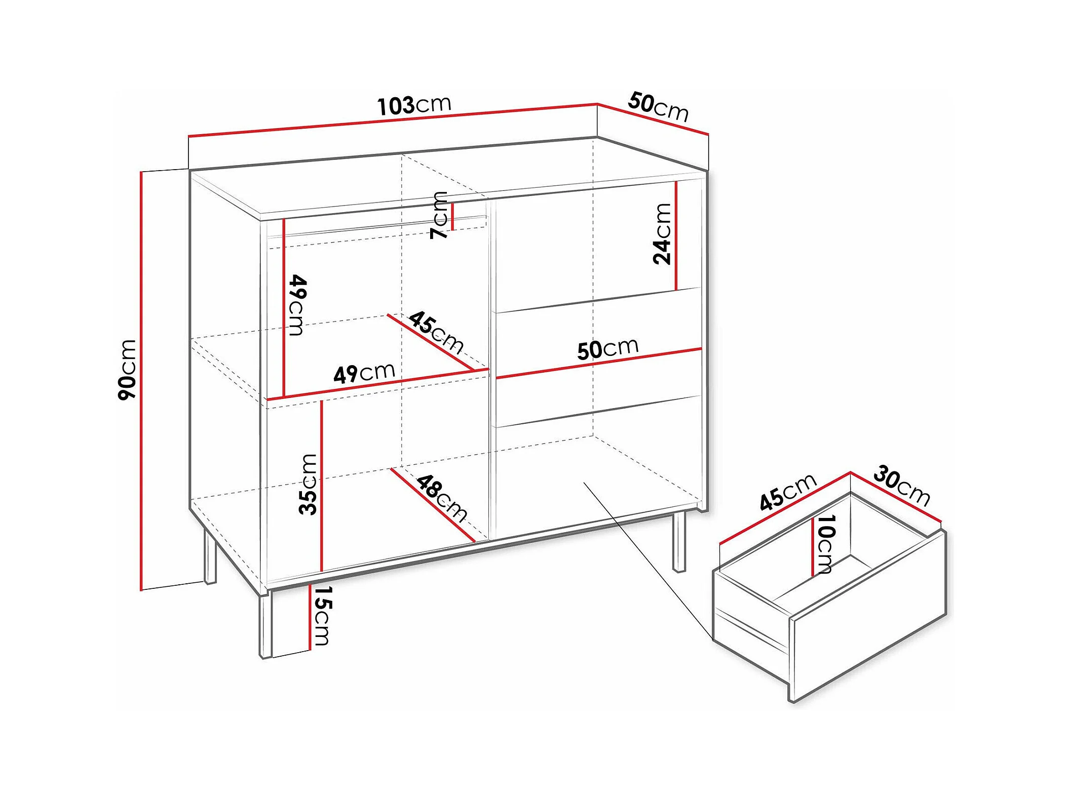 Cómoda Comfivo Delruva 100, Com gavetas e portas, 9x10x5cm