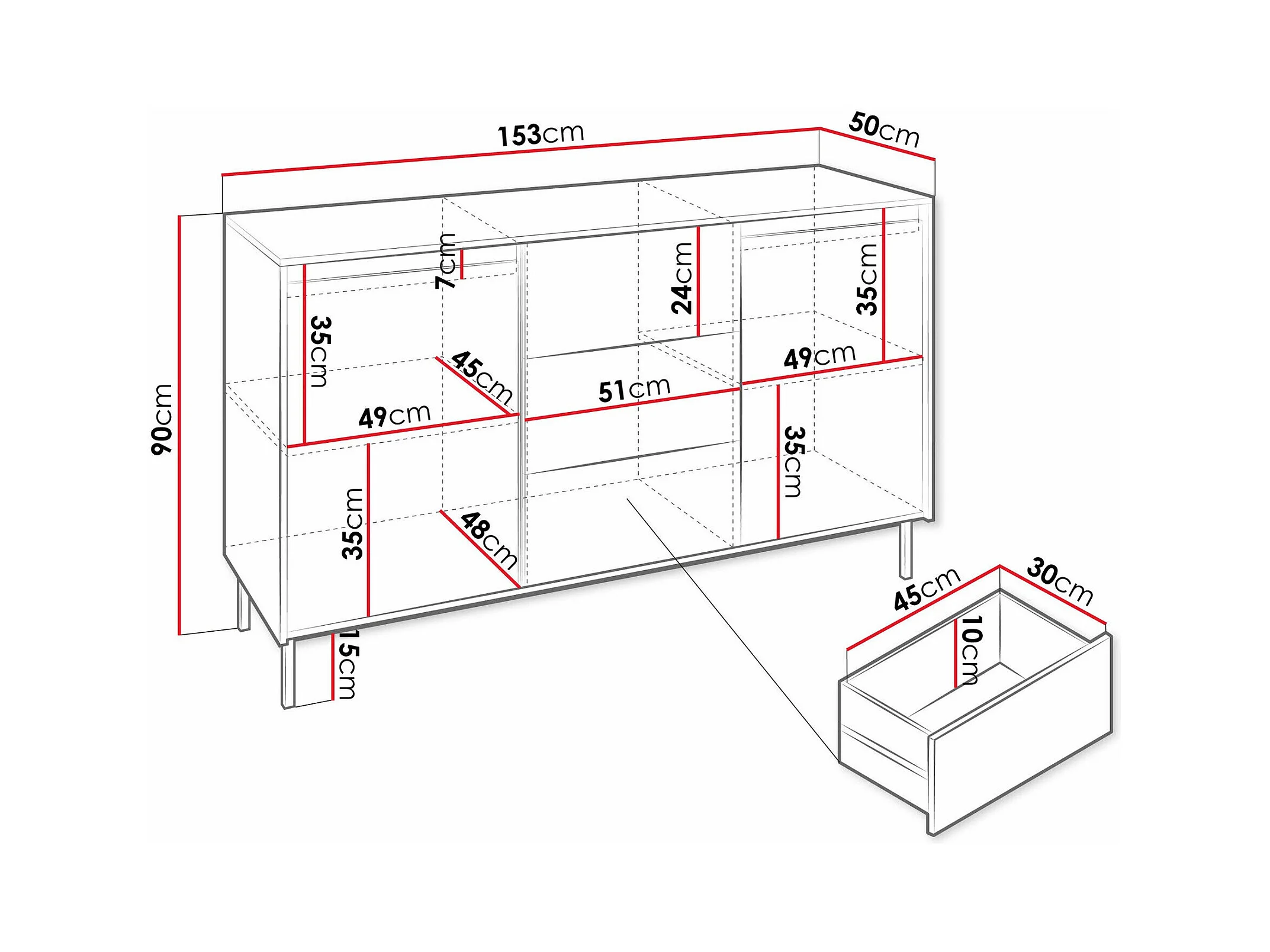 Cómoda Comfivo Delruva 101, Com gavetas e portas, 9x15x5cm