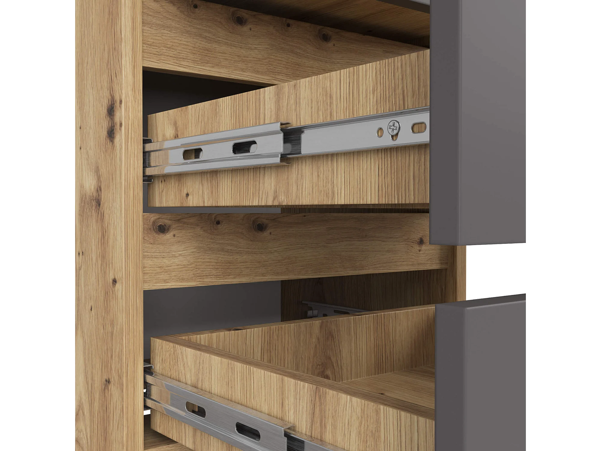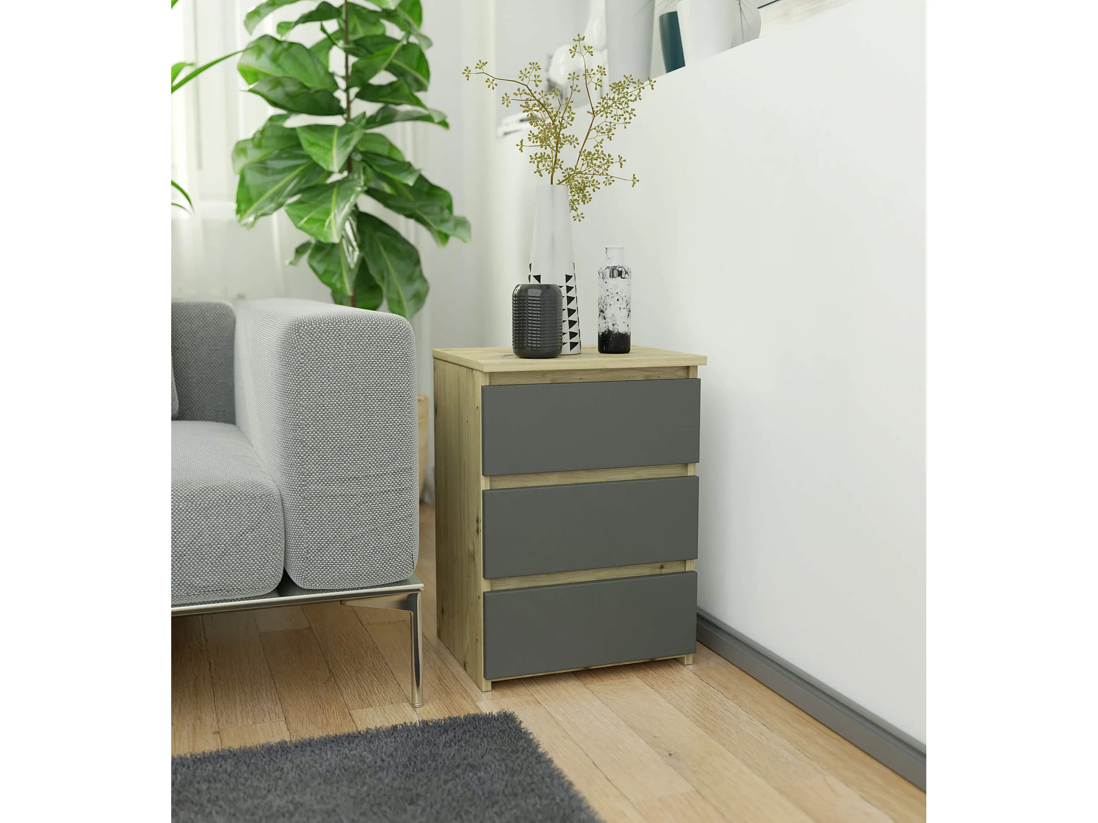 Cômoda de 3 Gavetas Carvalho Artesanal e Grafite Cinza, 40 cm, Design Elegante, Acabamento Fosco