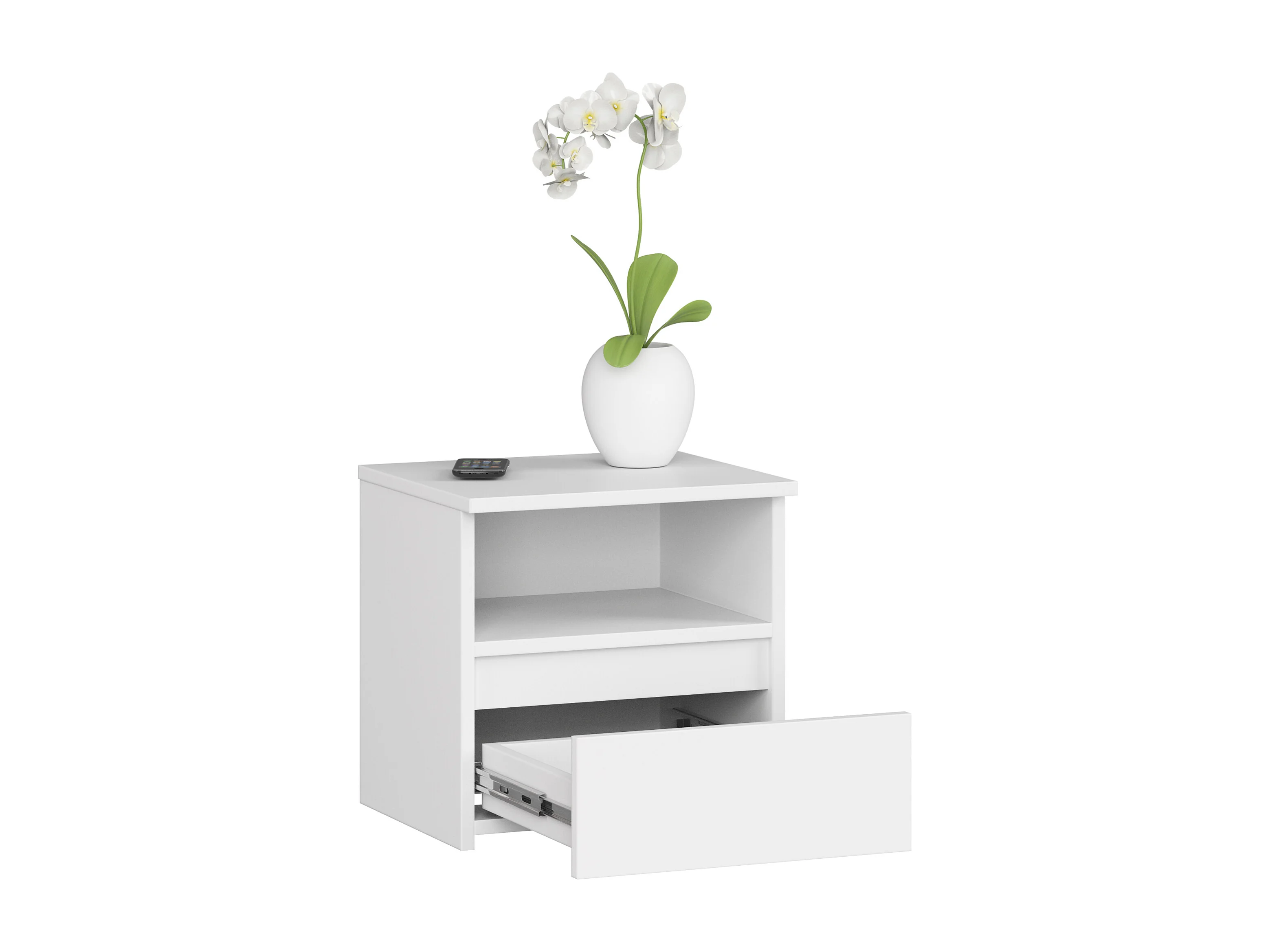 Cômoda de Cabeceira Branca com Gaveta 40x40x35 cm - Acabamento Fosco e Bordas ABS
