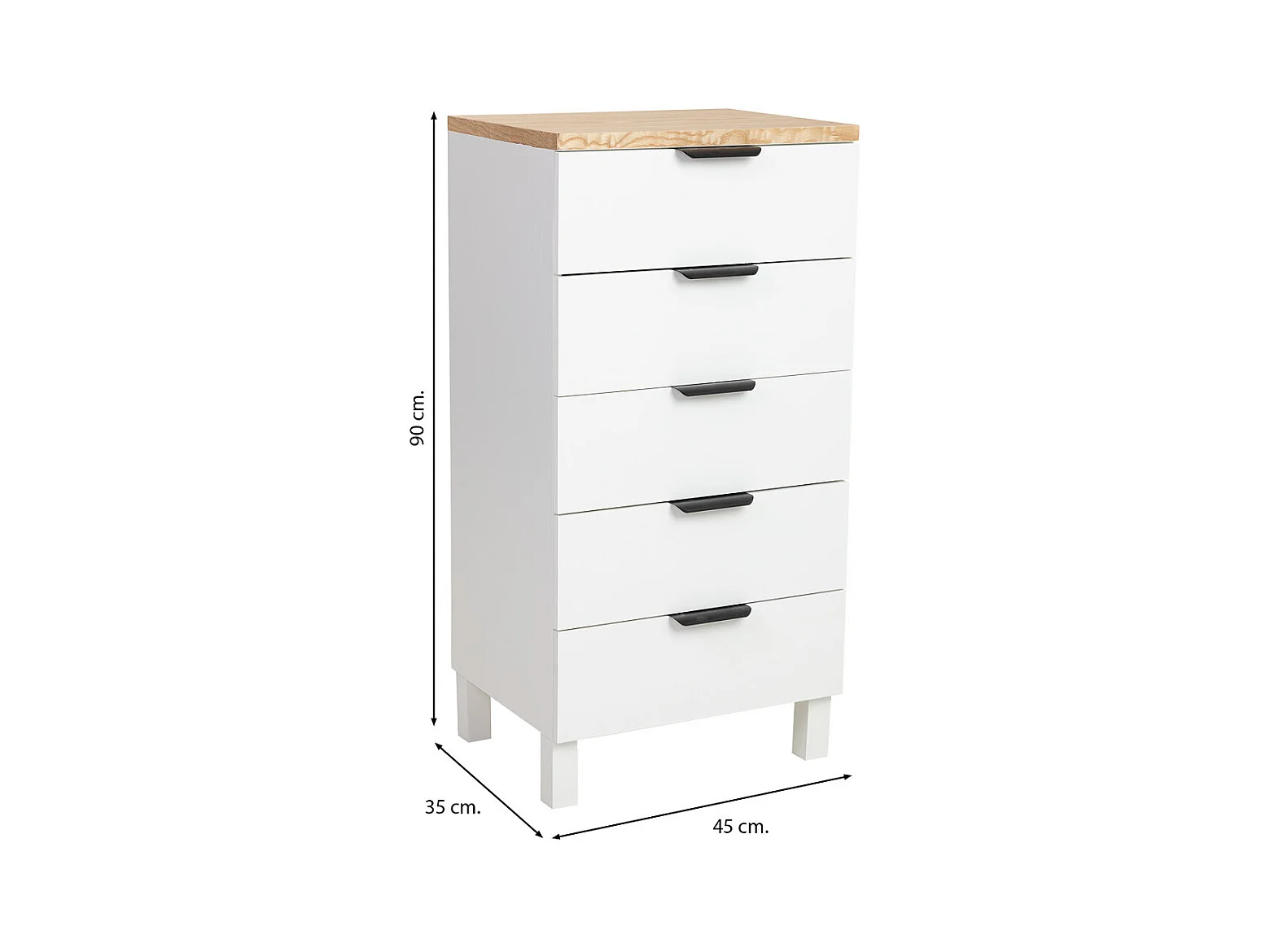 Cômoda de madeira branca 45x35x90