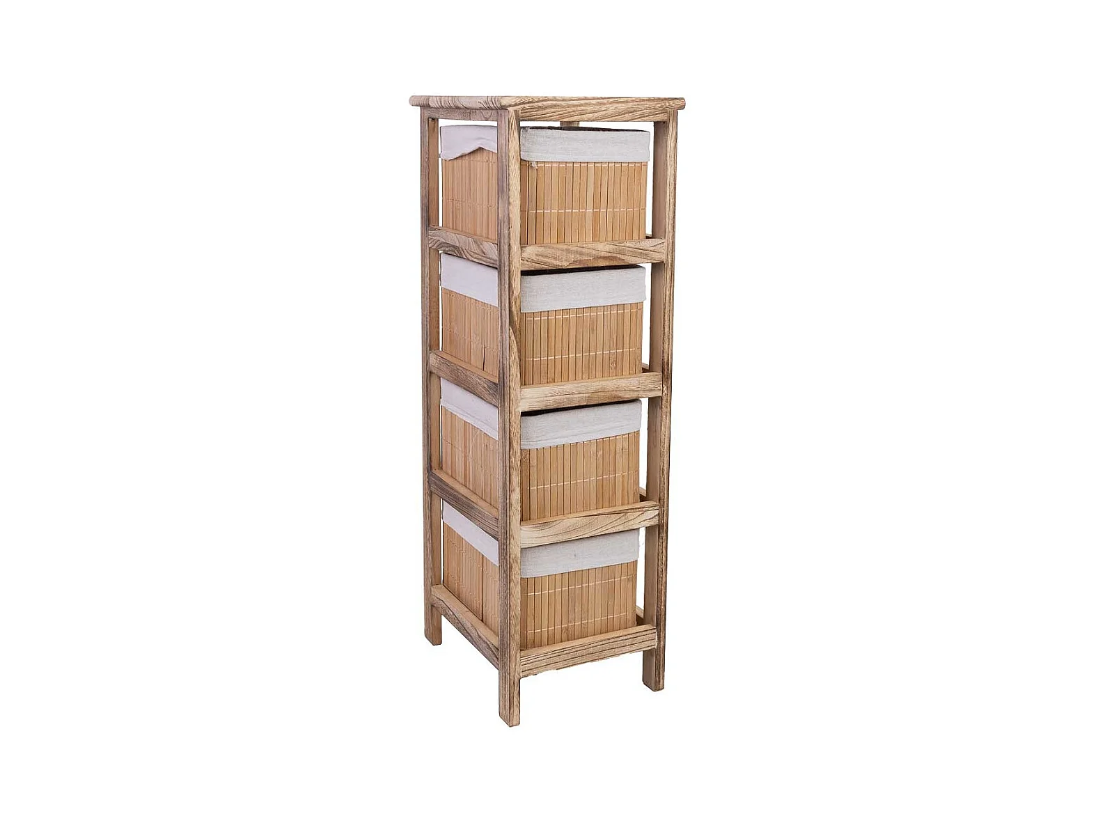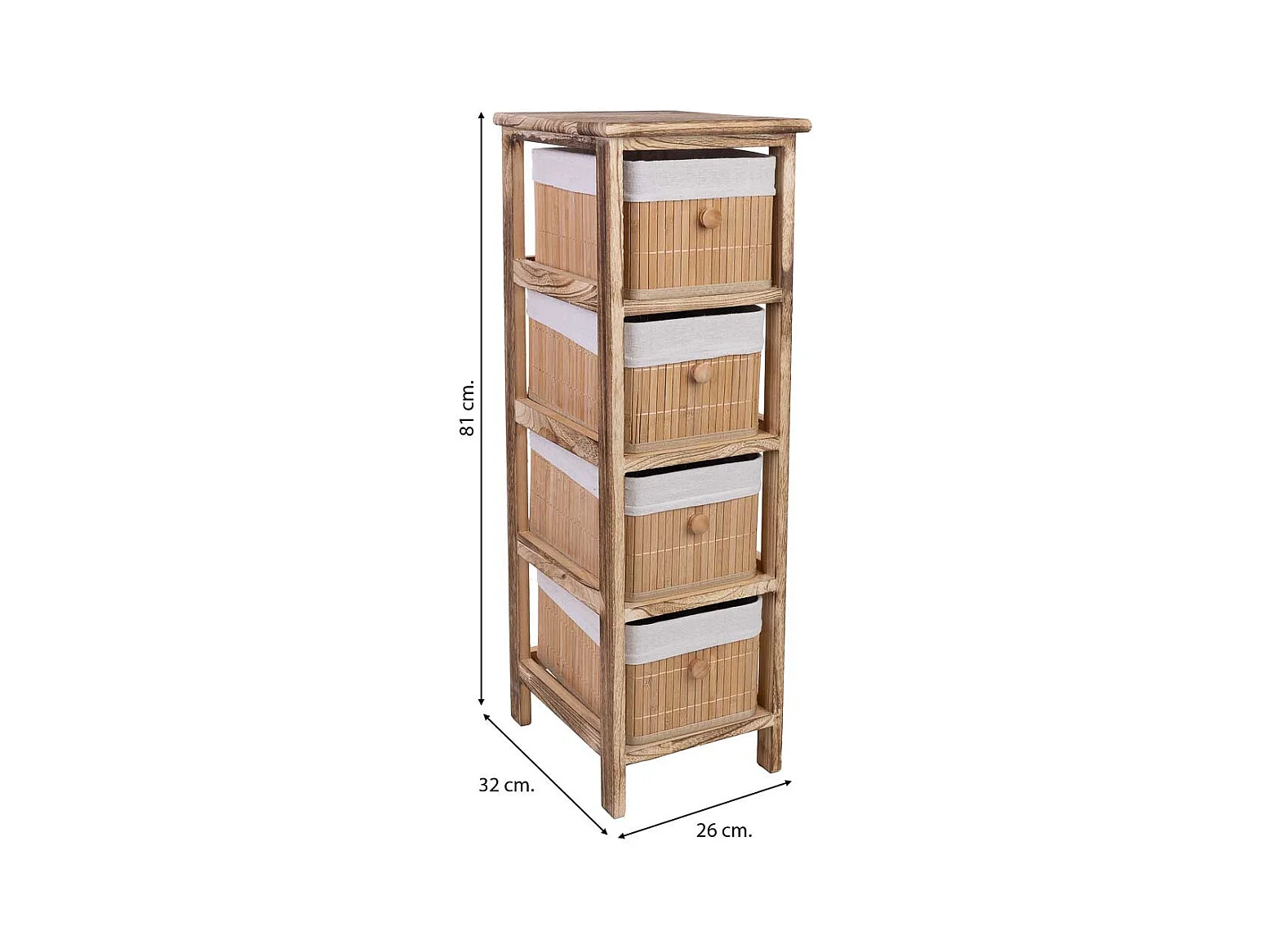 Cómoda de madeira com 4 gavetas forradas a bambu 26x32x81