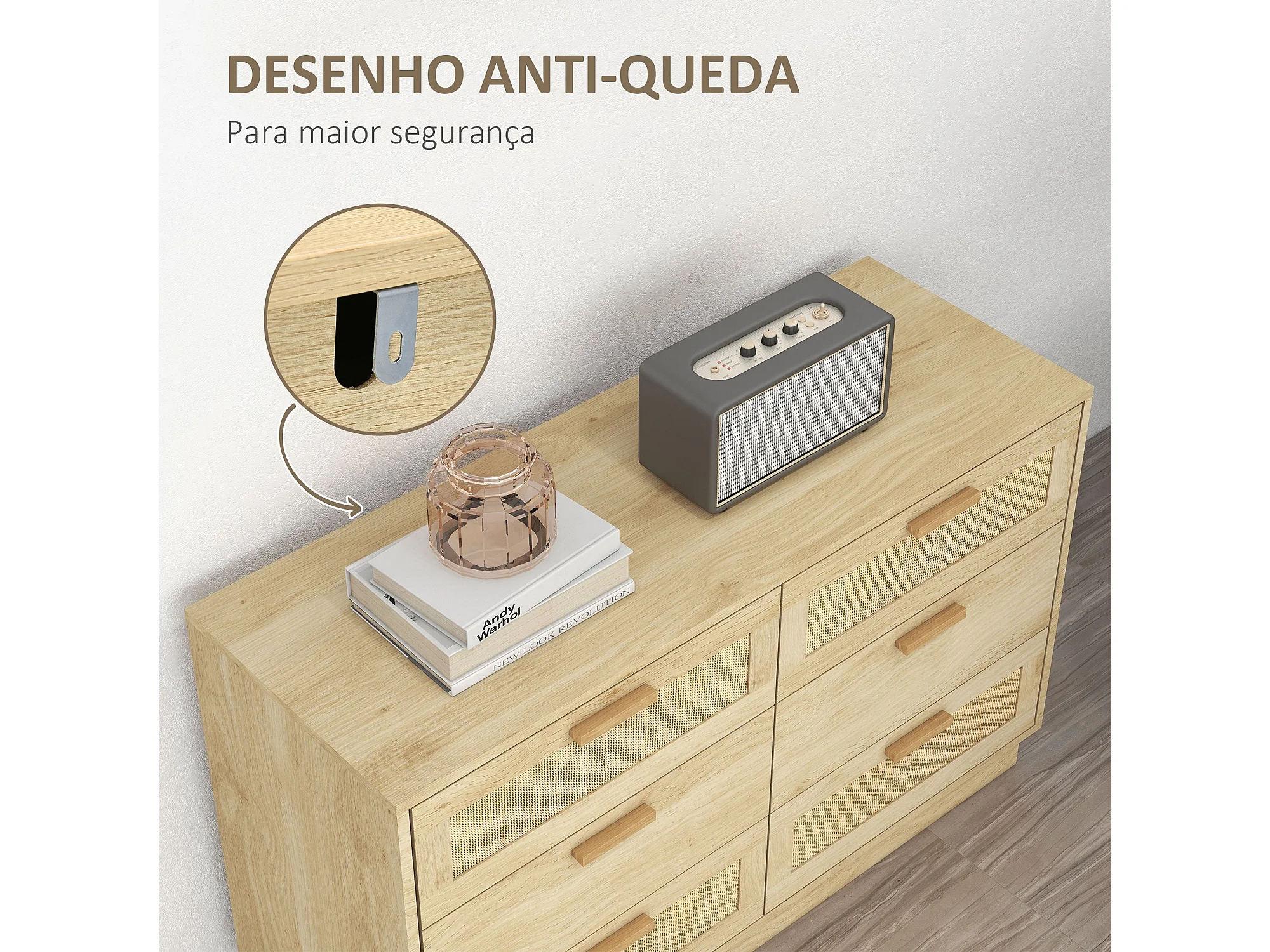 Cómoda de Madeira HOMCOM com 6 Gavetas em Estilo Boêmio - Ideal para Quarto e Corredor