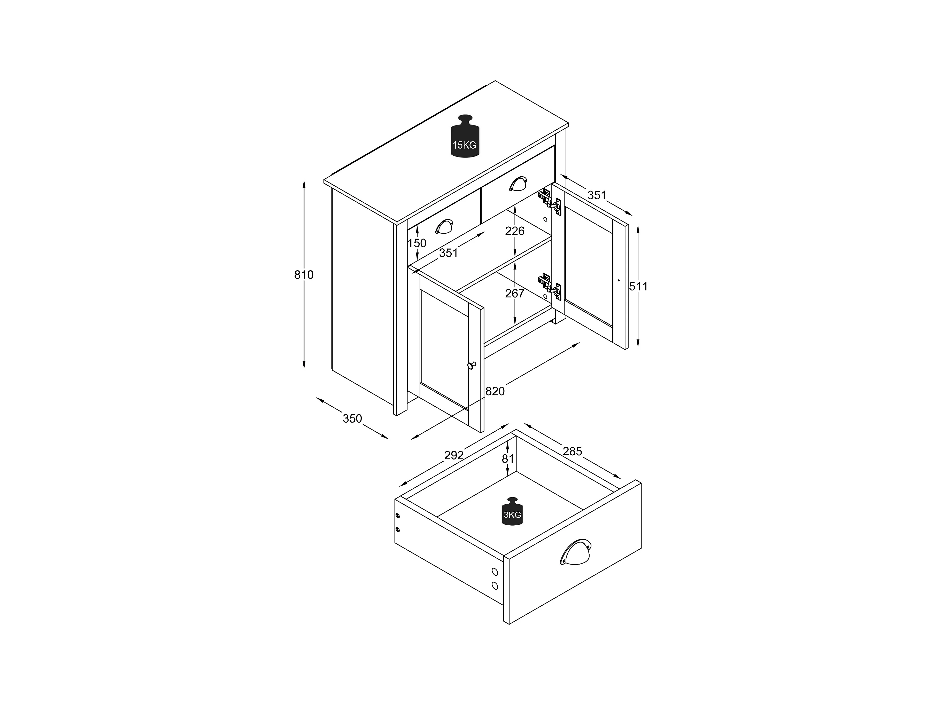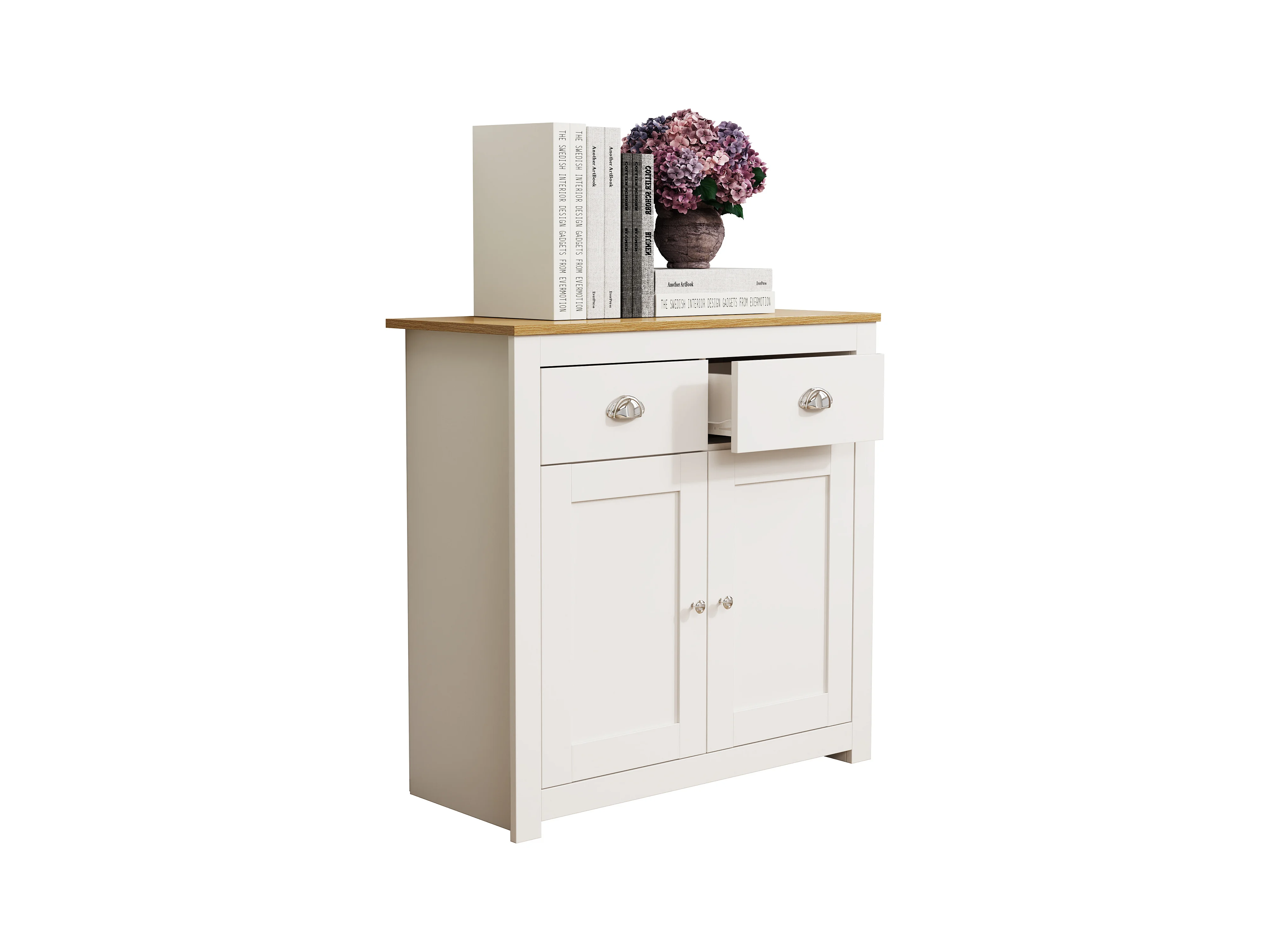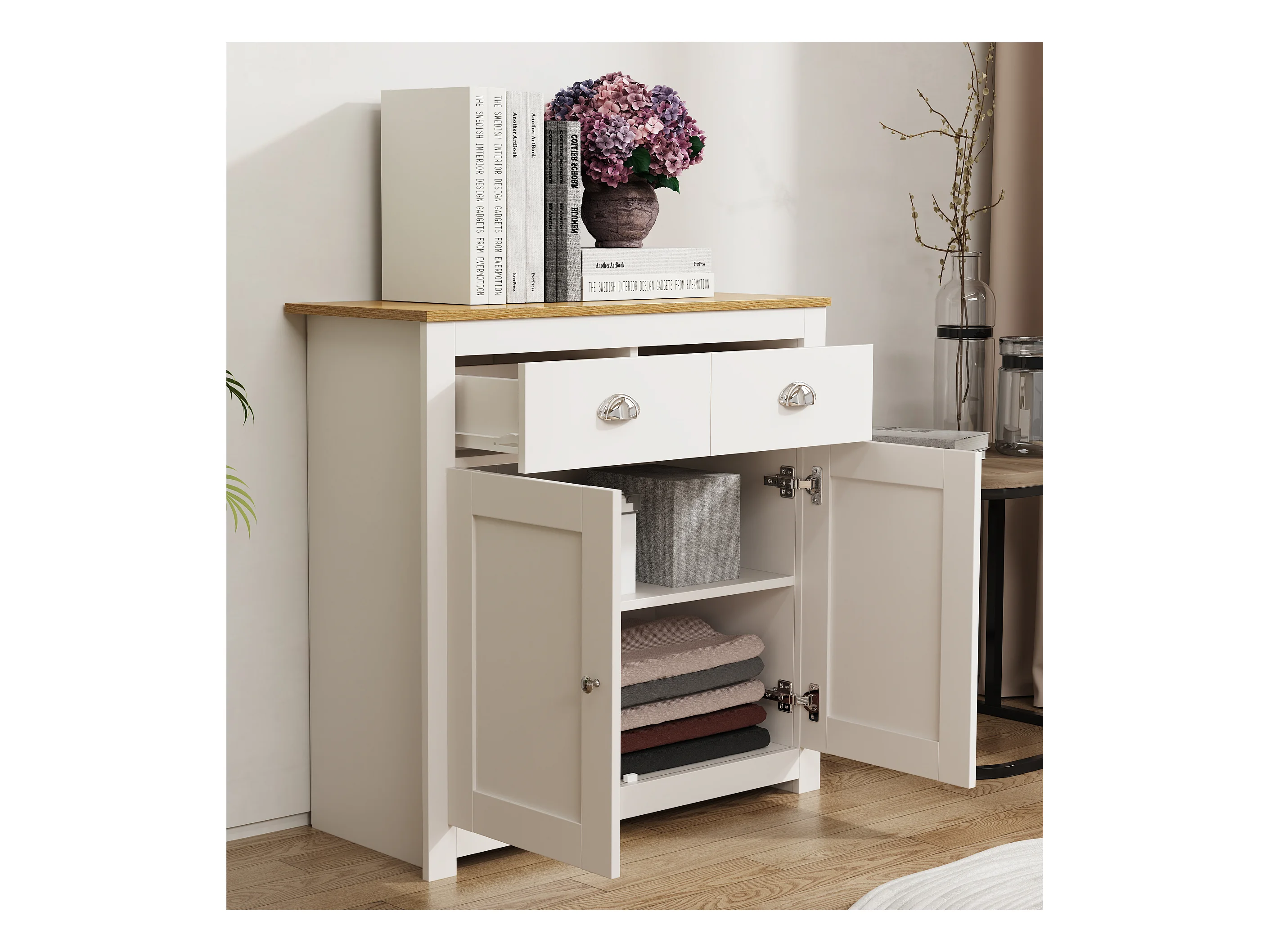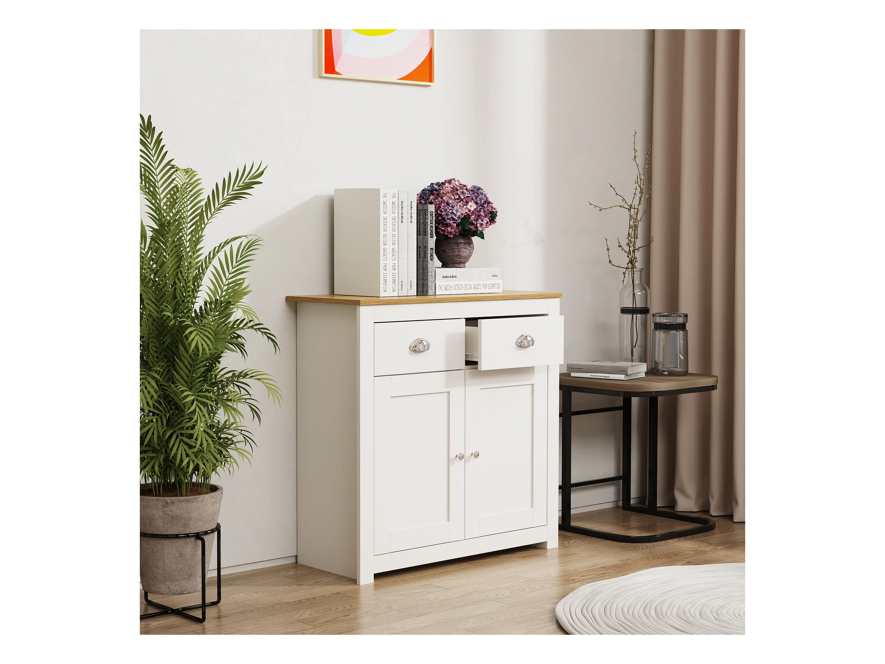 Cómoda de madeira VCM | aparador com portas de batente e gavetas | dimensões aprox. h. 81 x w. 82 x d. 35 cm - Balusa L (branco)