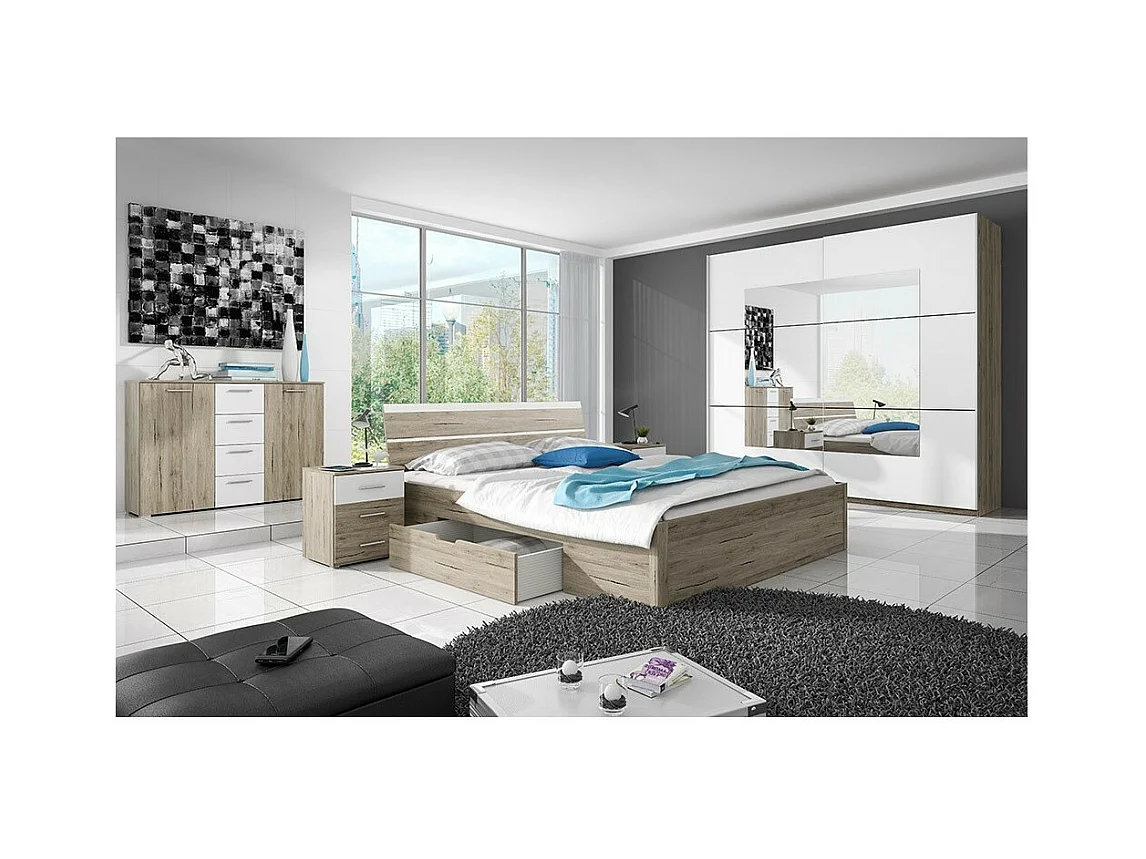 Cômoda HAVANA carvalho e preto – 4 gavetas – Estilo natural e armazenamento moderno