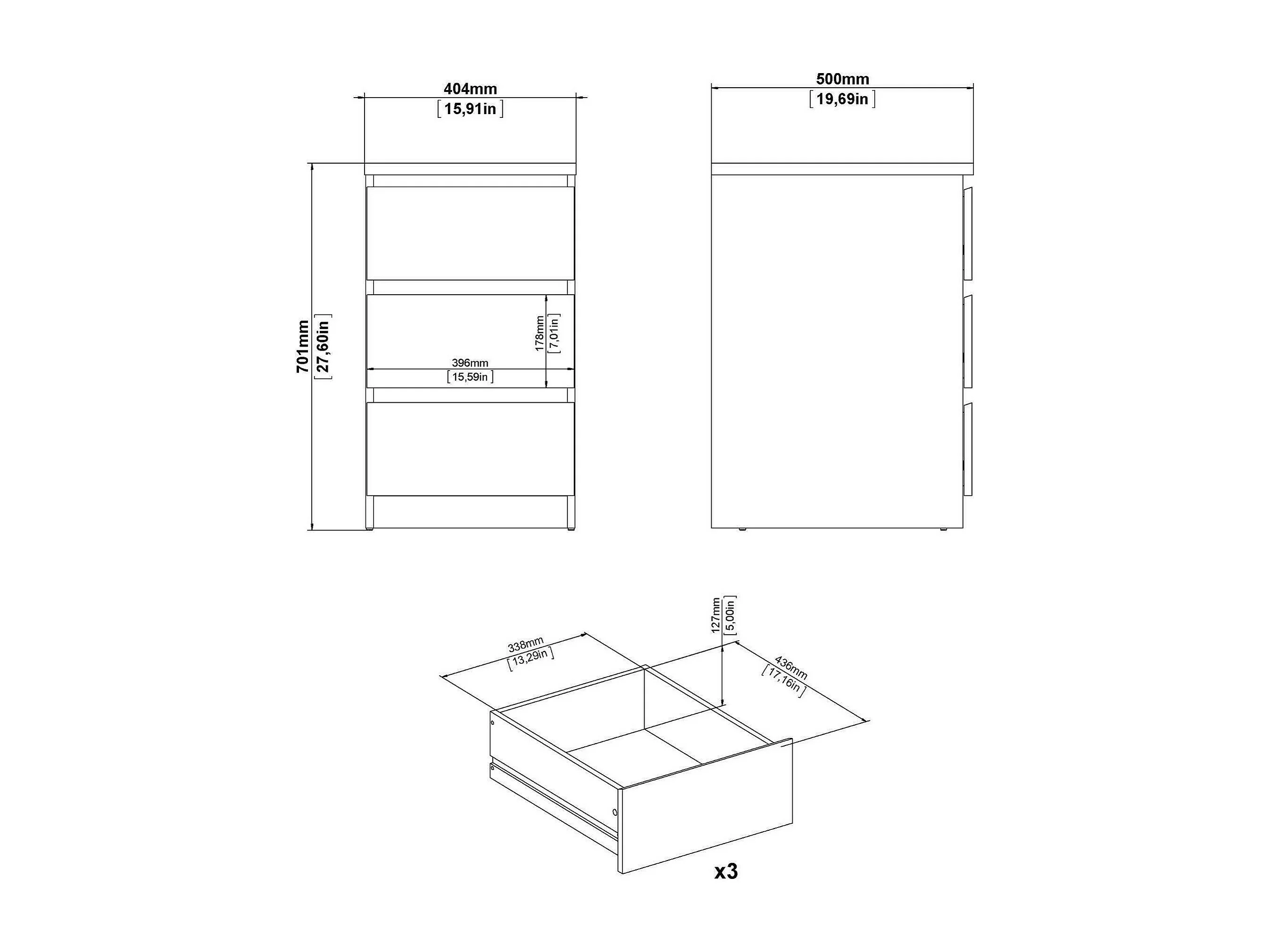 Cómoda Drepett, Cómoda multiusos, Cómoda de quarto, Armário com gavetas, 50x40 h70 cm, Branco