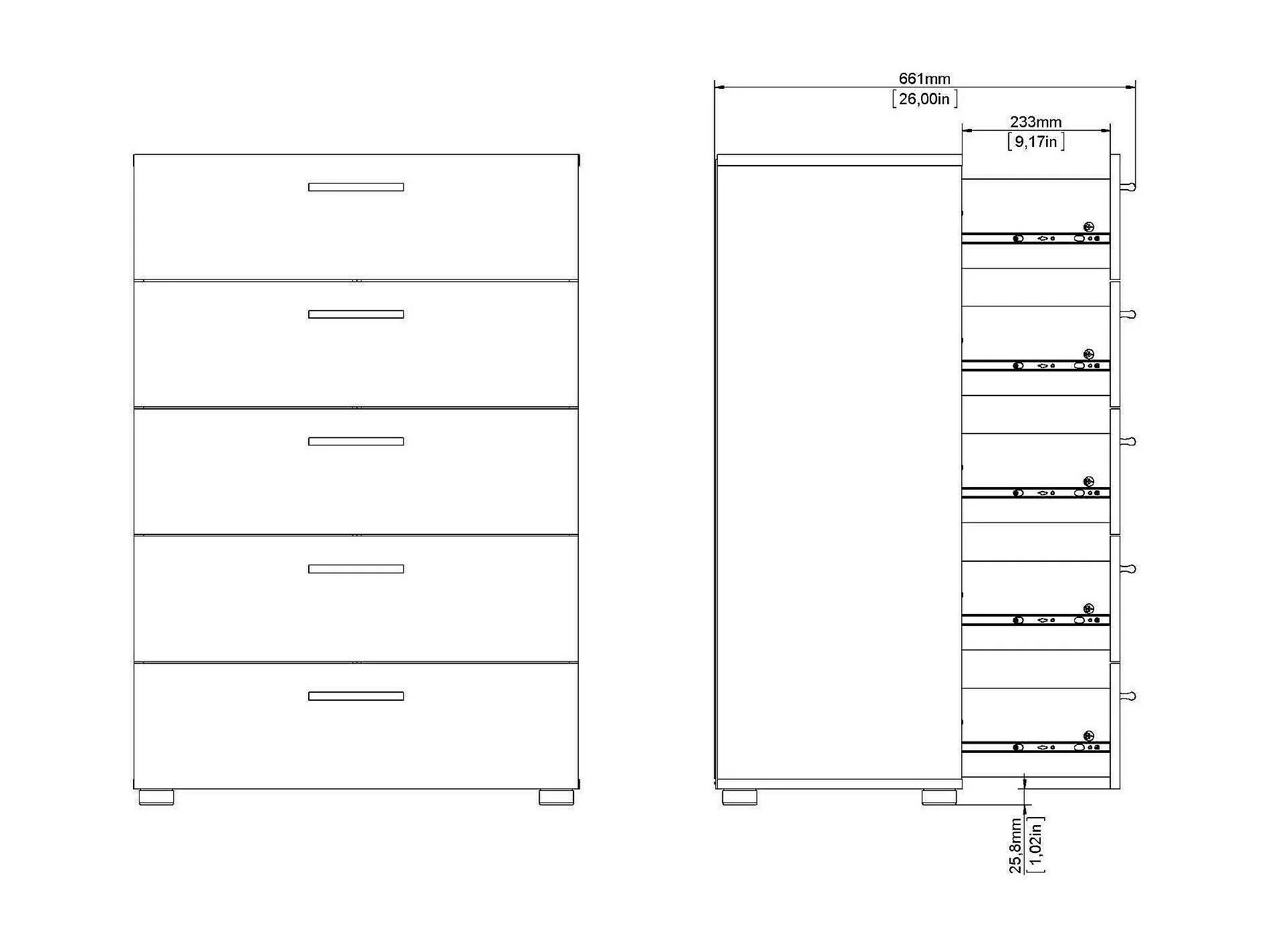 Cómoda Drosell, Cómoda multiusos, Cómoda de quarto, Armário com gavetas, 70x40 h102 cm, Carvalho e Branco