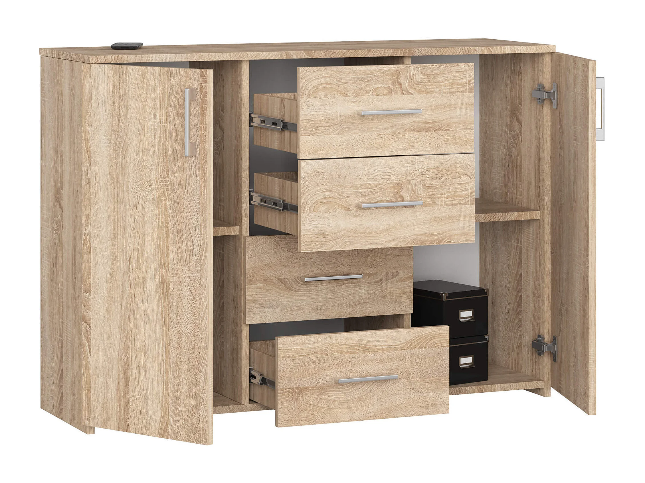 Cômoda Elegance Carvalho de Sonoma 110cm - 4 Gavetas, 2 Portas