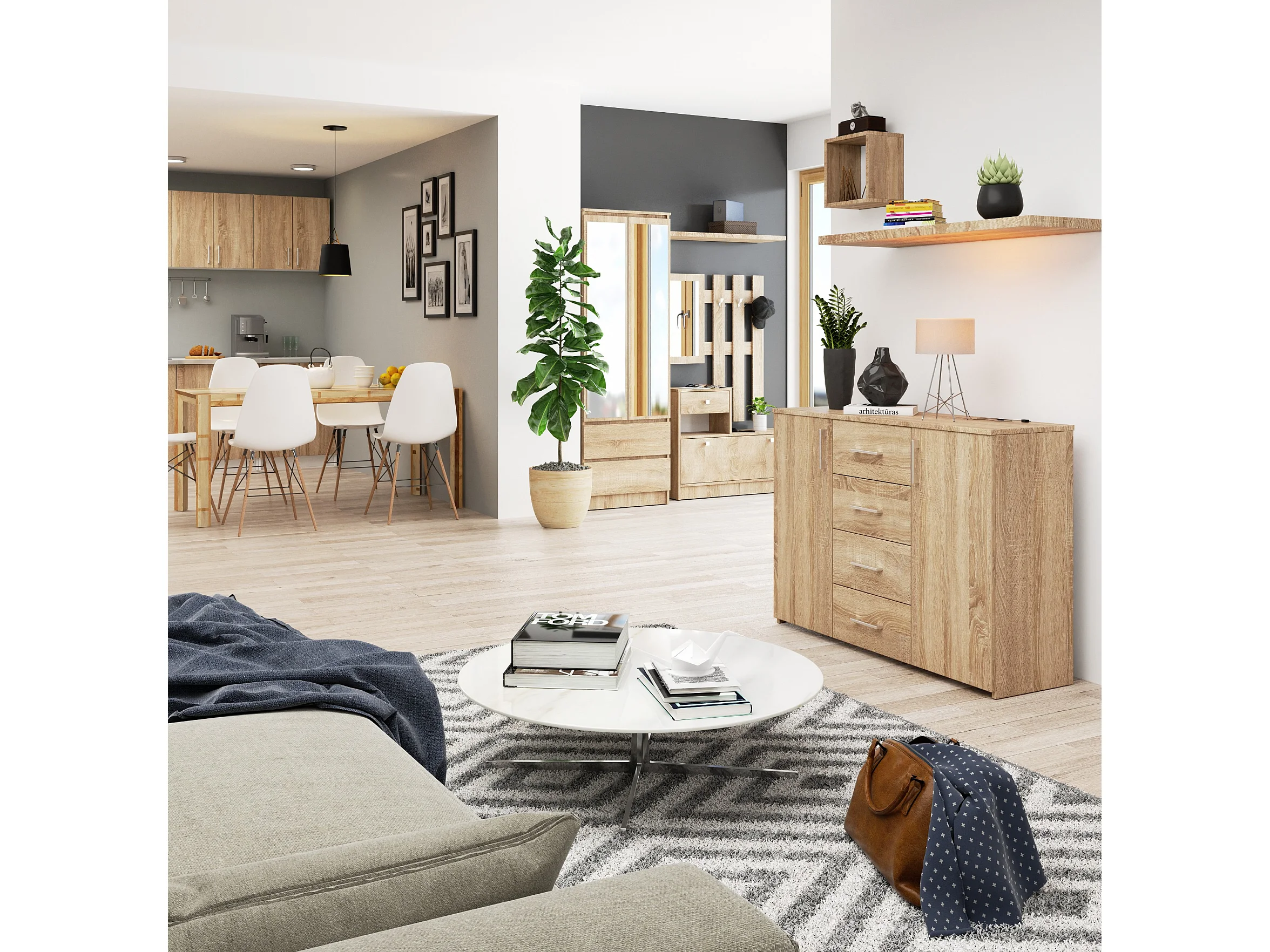 Cômoda Moderna de 4 Gavetas em Carvalho Sonoma - 60cm