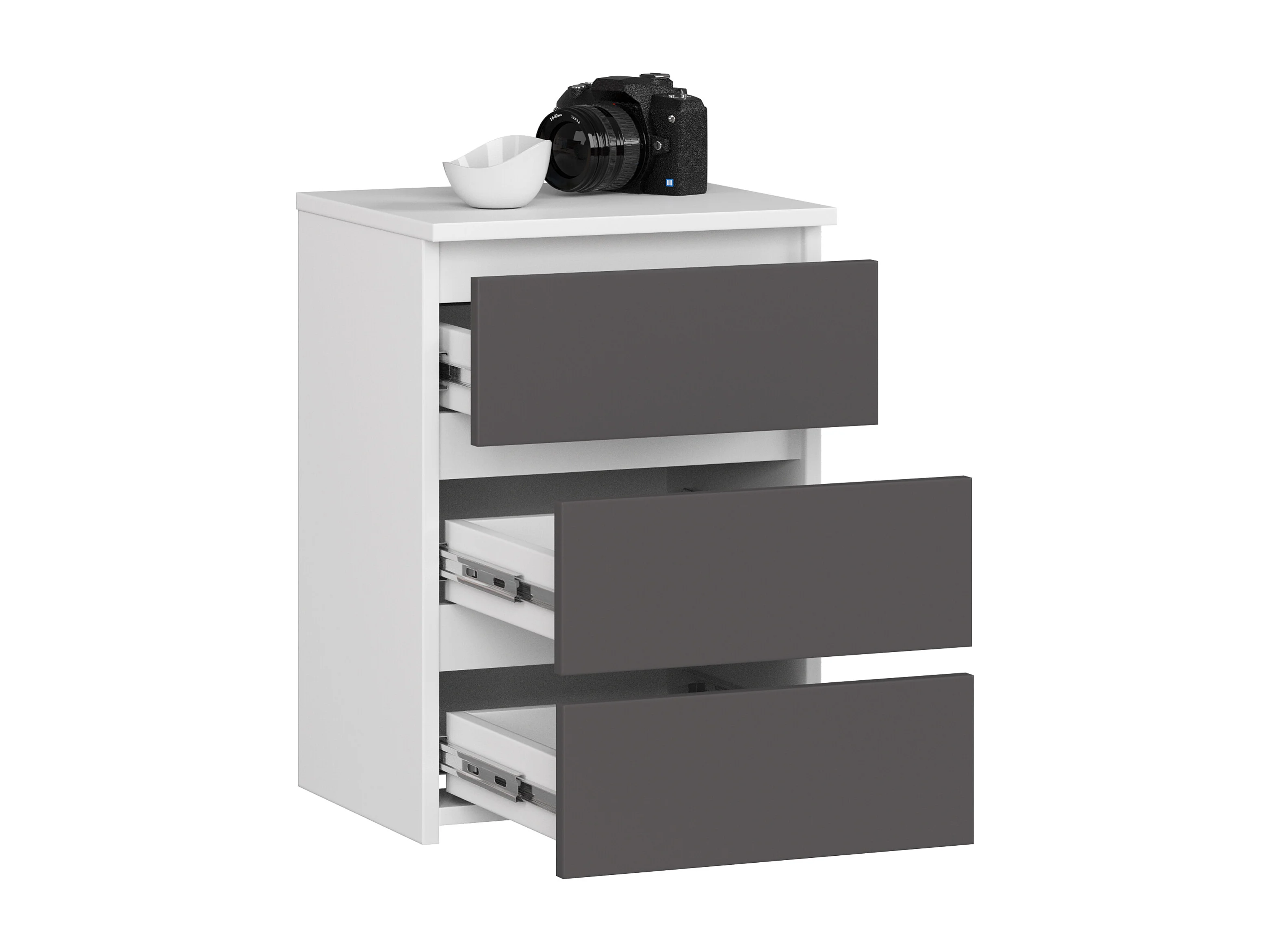 Cômoda Moderna CL1, Branco/Grafite, 40x40 cm, Gaveta com Bloqueio, Puxador ABS, Montagem Fácil