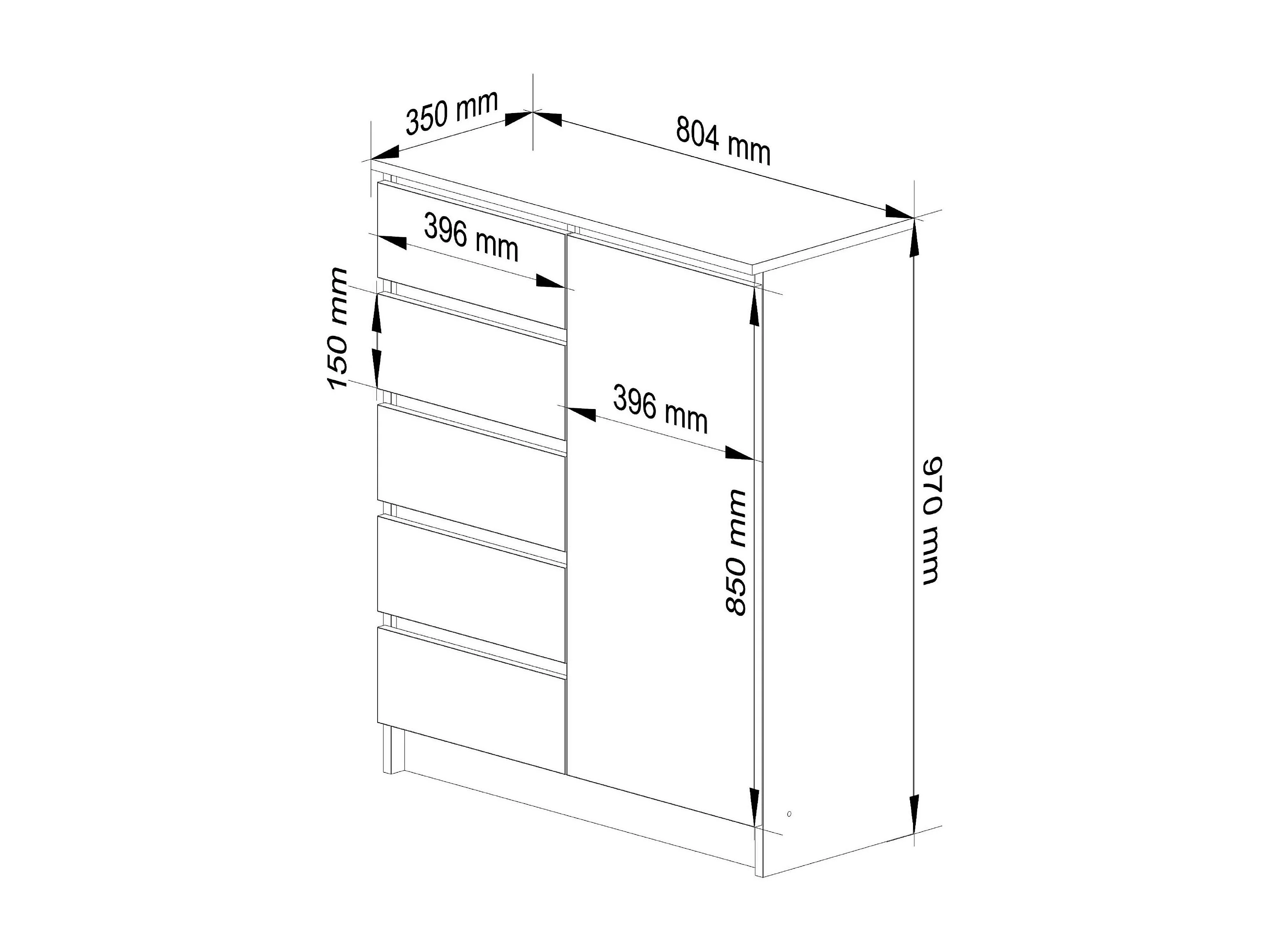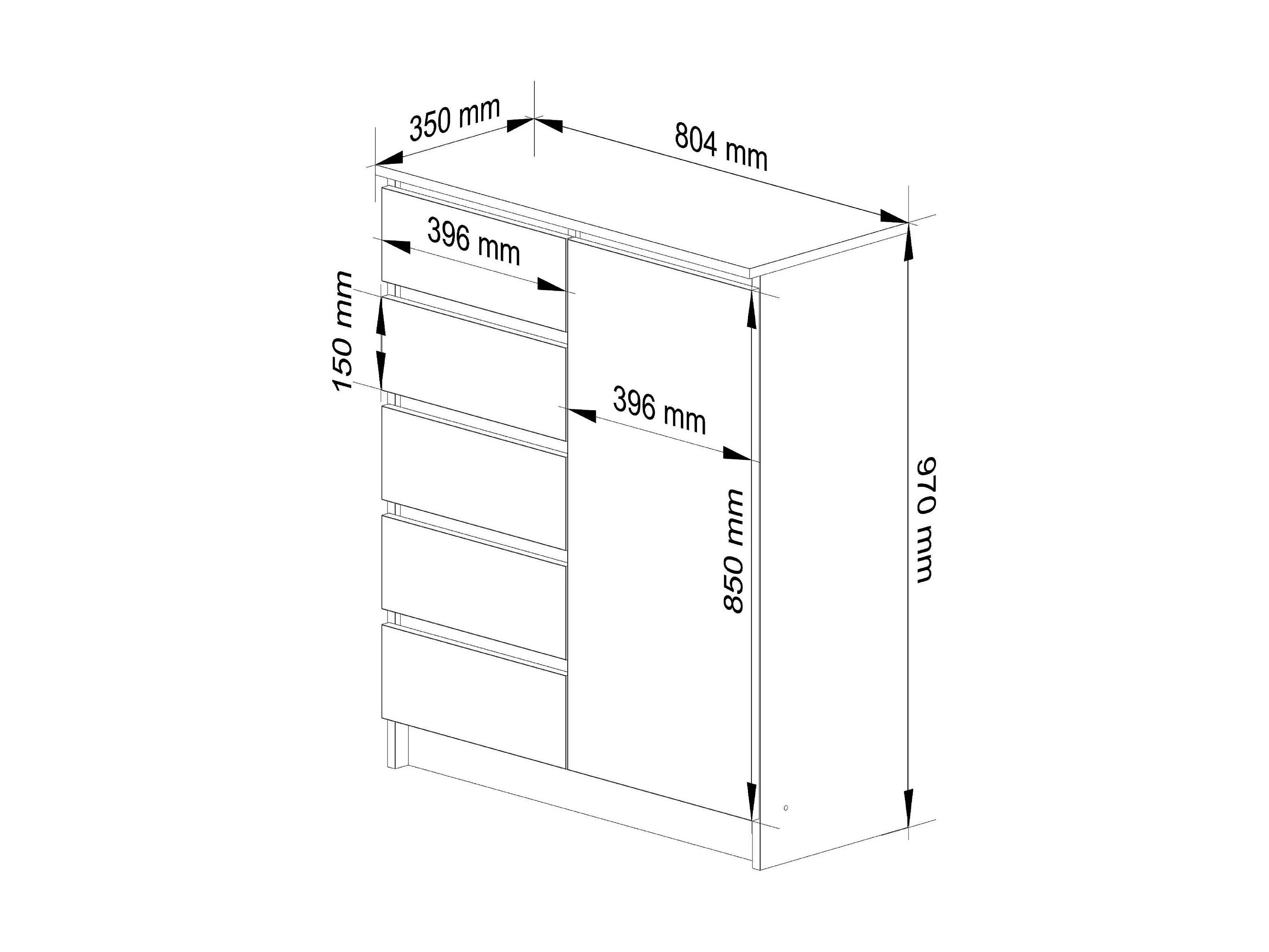 Cômoda Elegante Carvalho Artesanal/Bianco com 5 Gavetas e 1 Porta