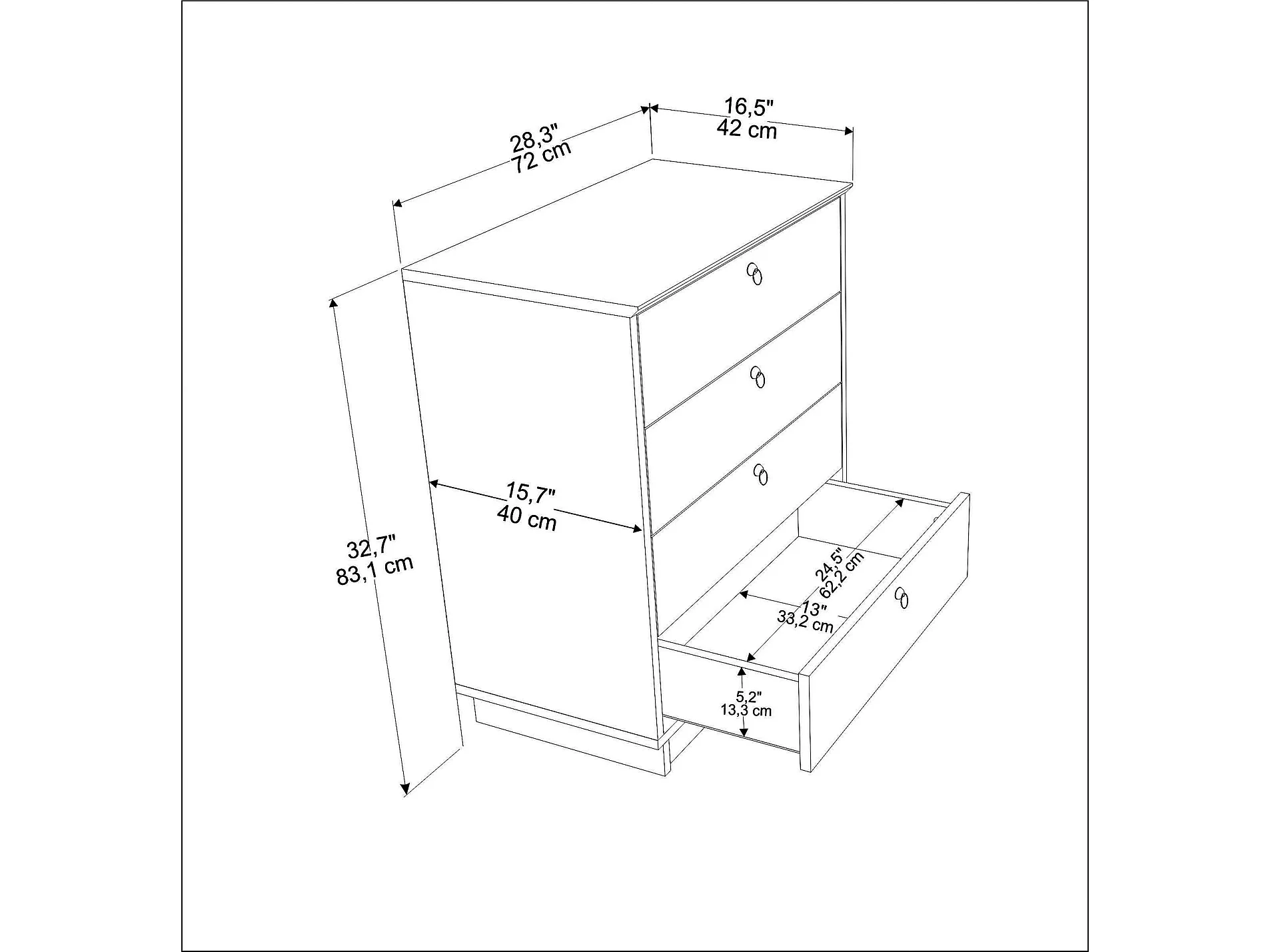 Cómoda Elysian de 4 Gavetas em Branco e Carvalho Claro - Estilo Nórdico 72x42x83.1 cm